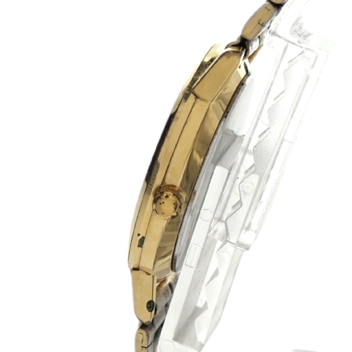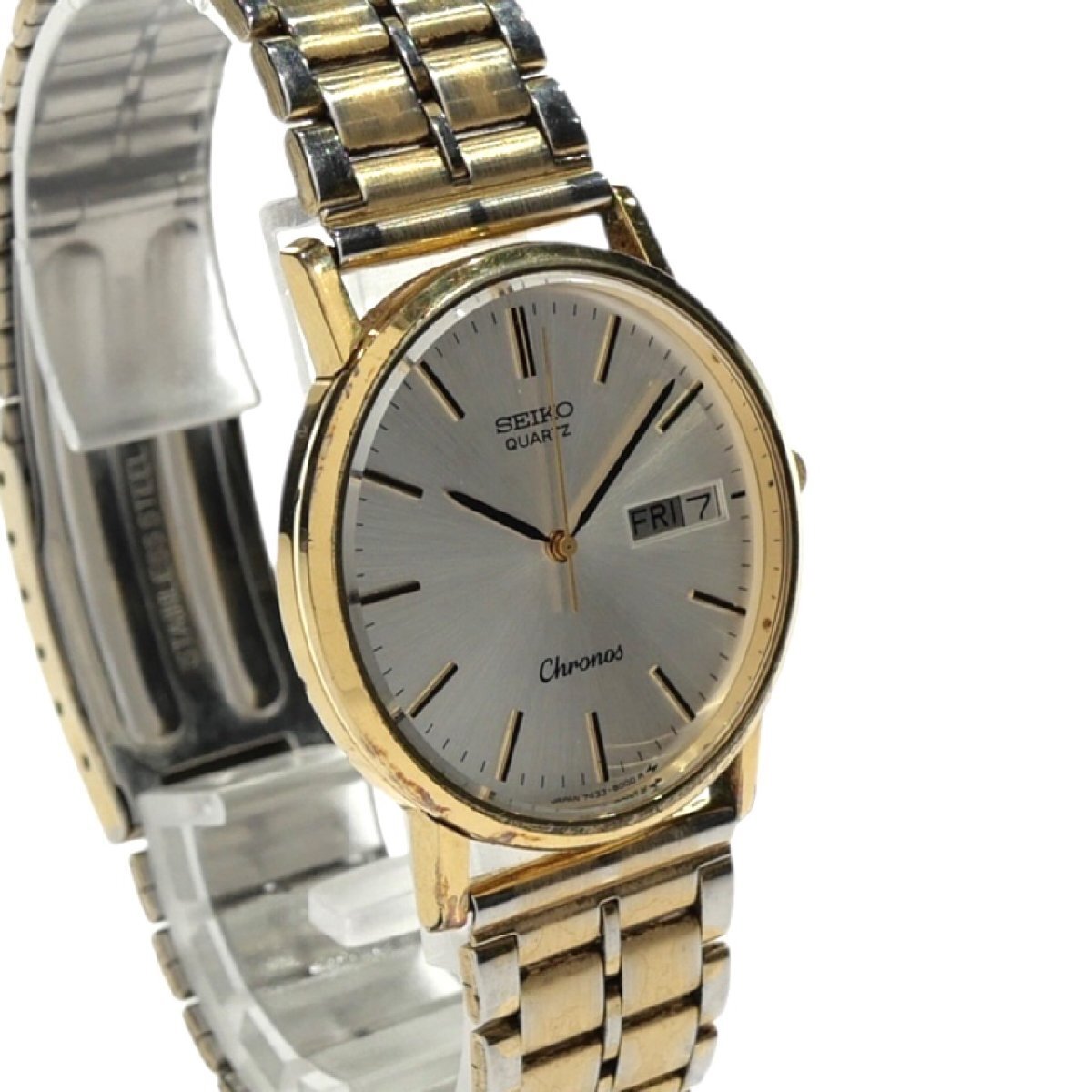 1円スタート 稼働品 SEIKO セイコー Cronos クロノス 7433-800A デイデイト クォーツ ラウンド 3針 ゴールド シルバー文字盤 メンズ 腕時計 收藏