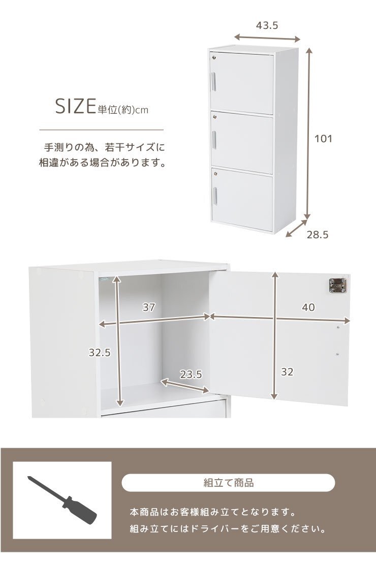 カラーボックス 収納ボックス キューブボックス 収納棚 鍵付き 扉付き 3段ボックス ラック 鍵付き扉 収納ラック モルタルベージュ 收藏