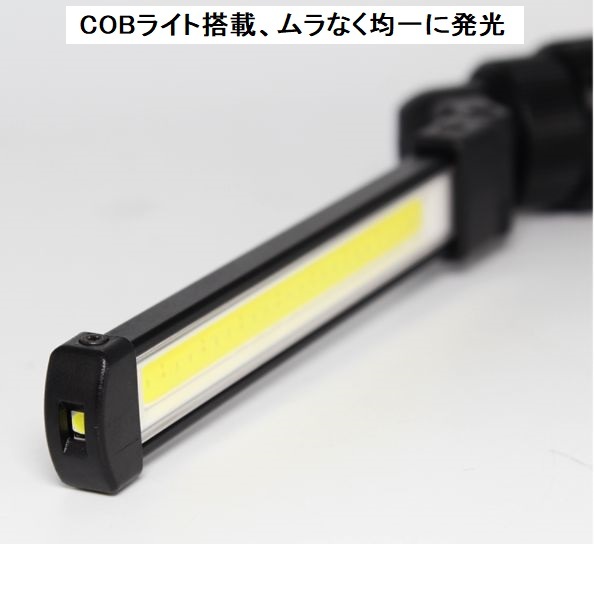 作業灯 ワークライト 充電式 LED ライト 18650 現場 磁石 cobライト 懐中電灯 ハンディライト 電池 バッテリー COBハンディ 単品 01