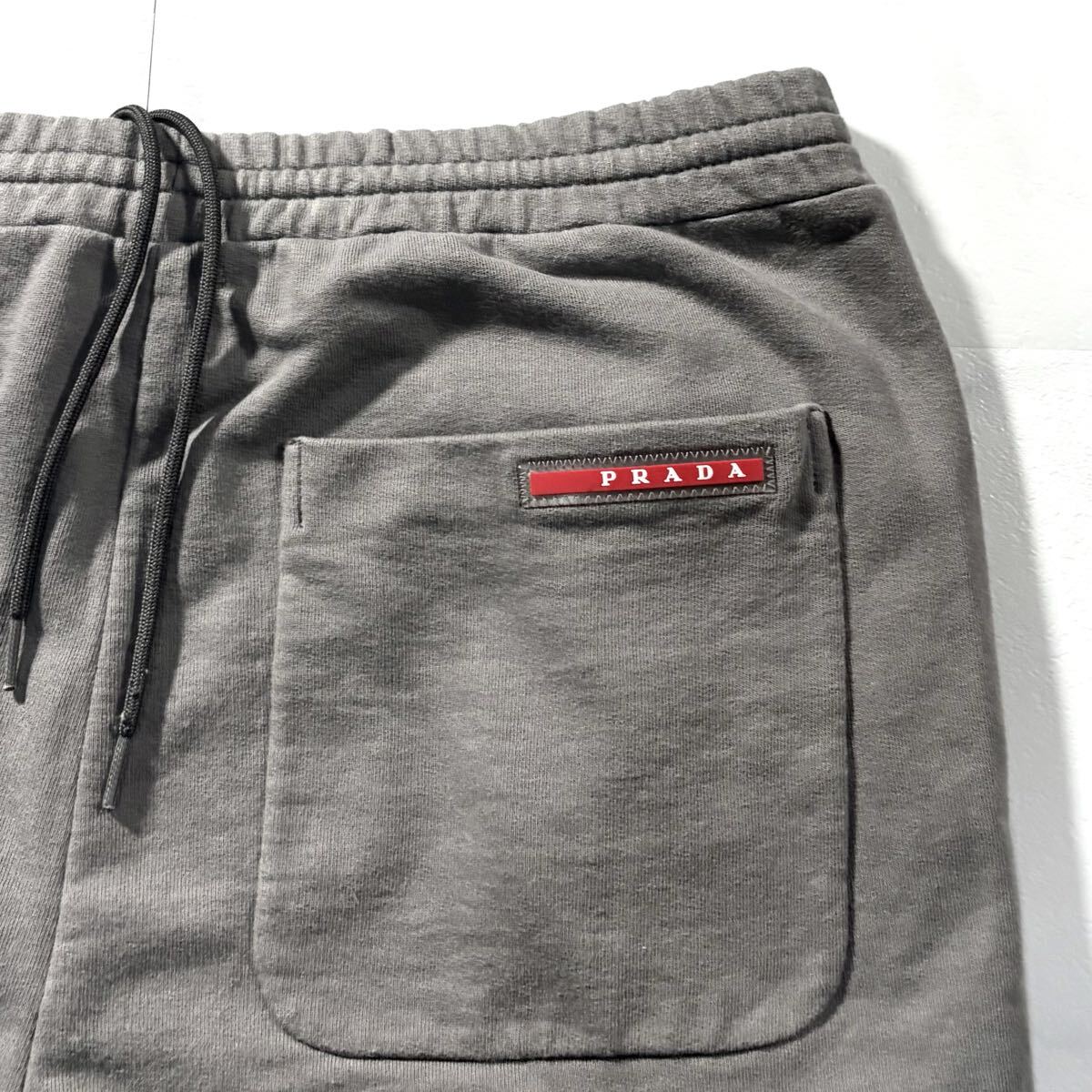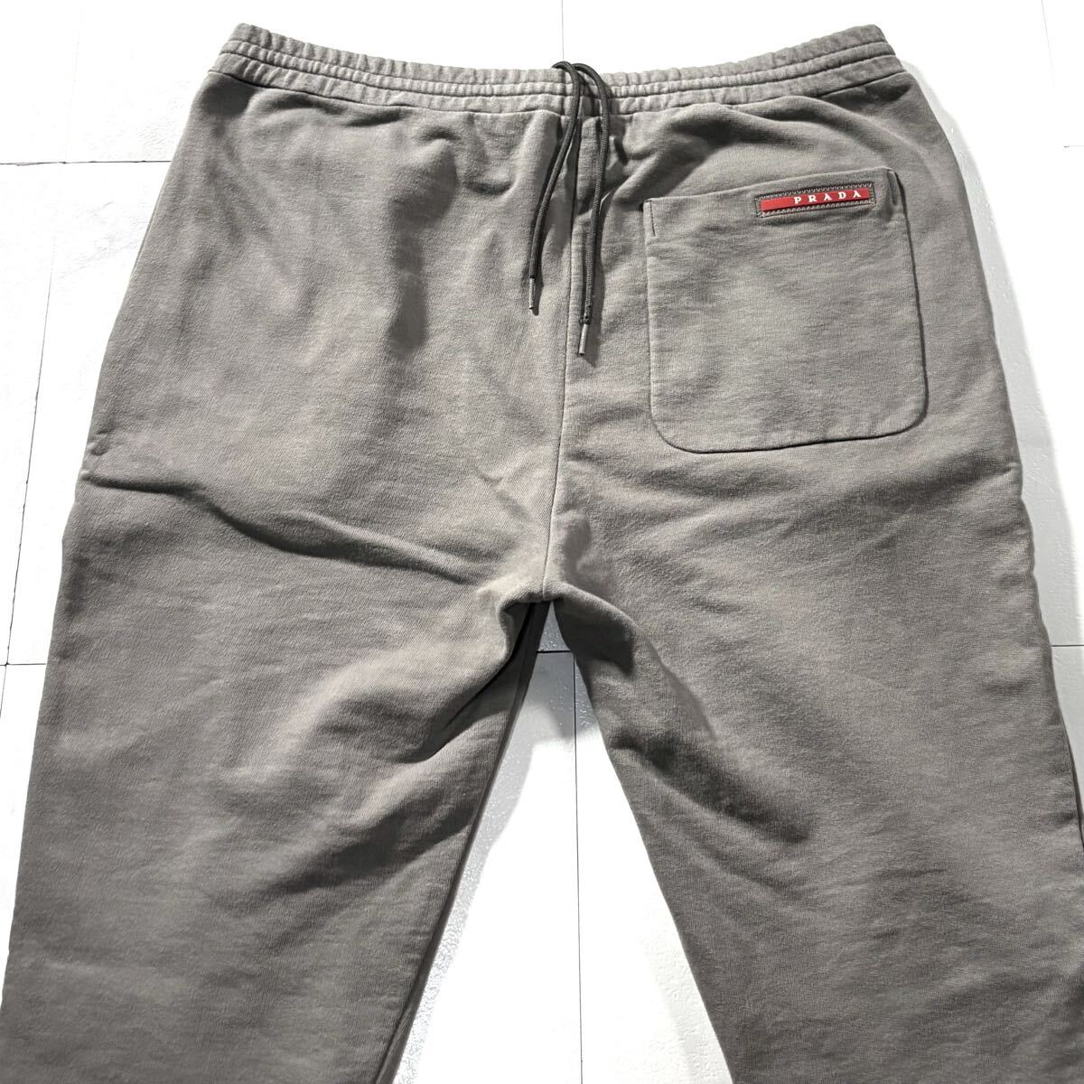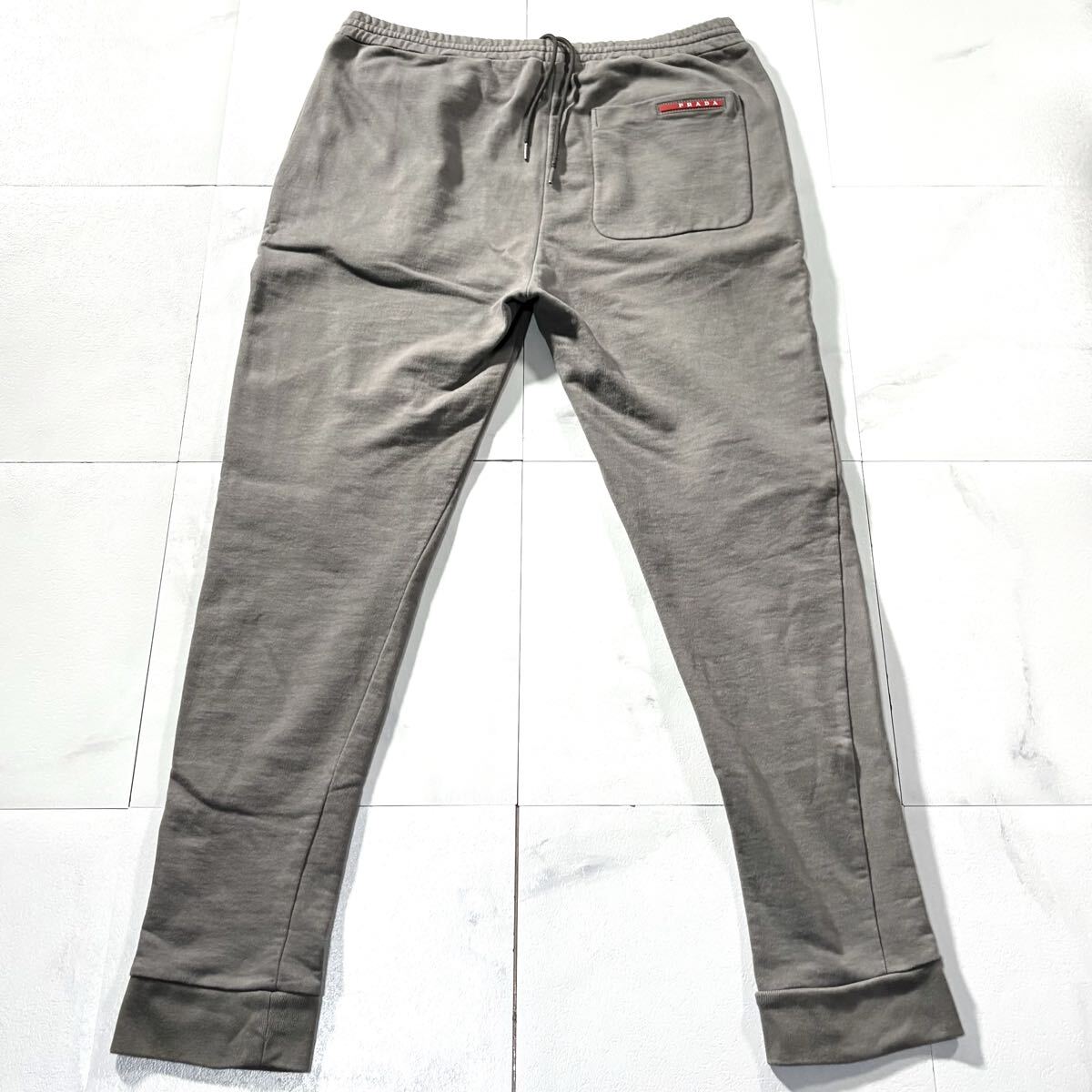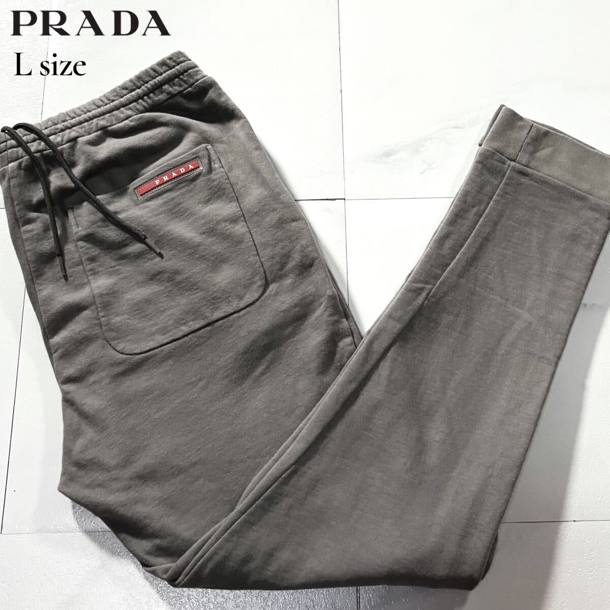 極美品/Lサイズ●高級 PRADA プラダ ジョガーパンツ ジャージ スエット コットン ストレッチ メンズ 背面ロゴワッペン 自宅洗可◎ グレー 收藏