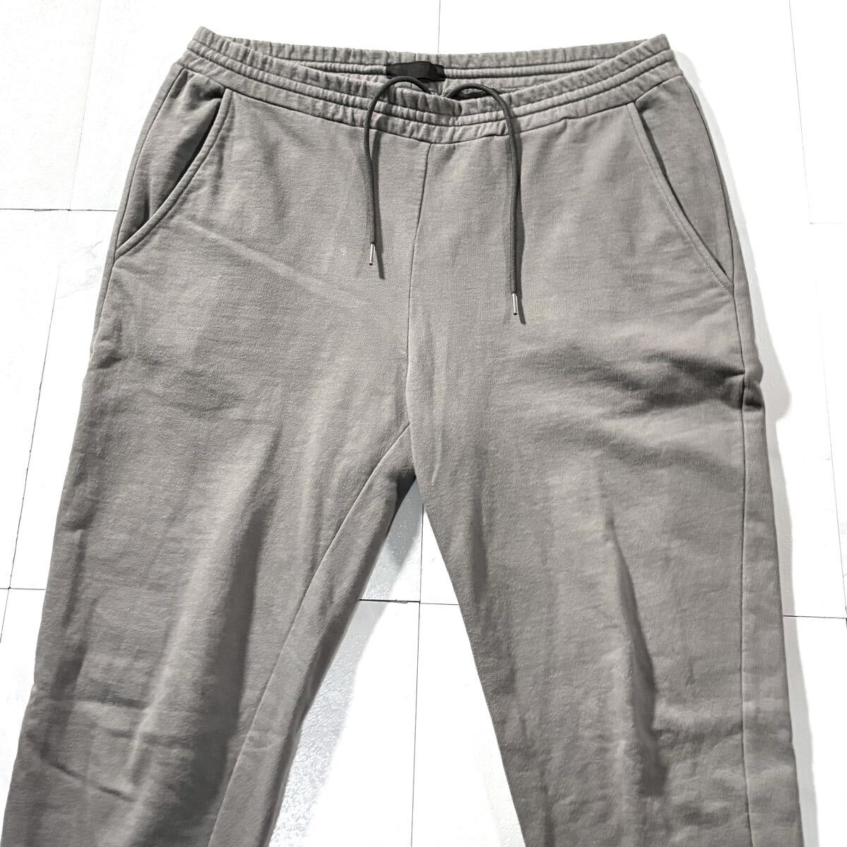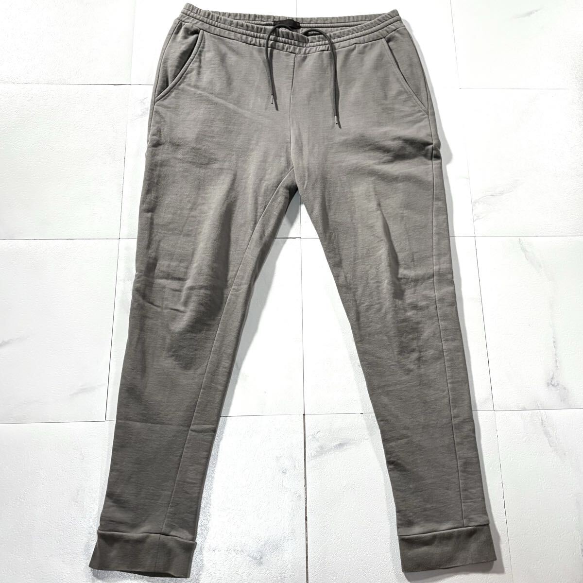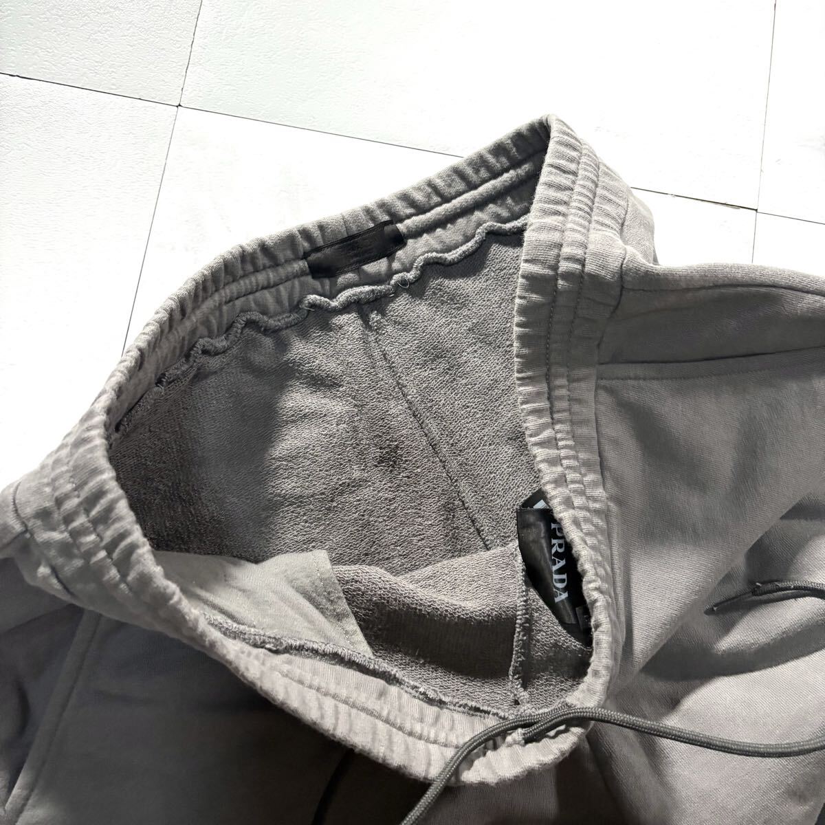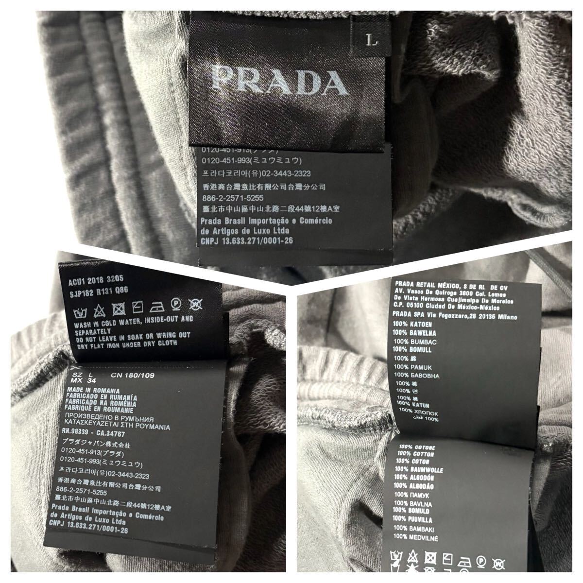 極美品/Lサイズ●高級 PRADA プラダ ジョガーパンツ ジャージ スエット コットン ストレッチ メンズ 背面ロゴワッペン 自宅洗可◎ グレー 收藏