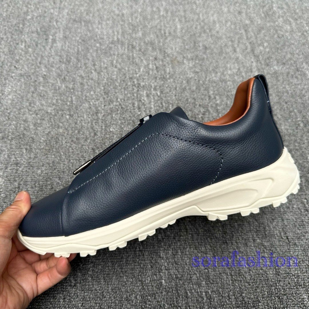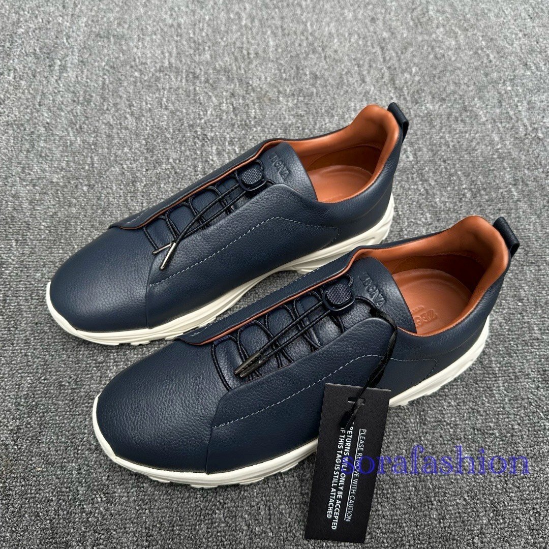 Ermenegildo Zegna エルメネジルド ゼニア メンズウォーキングシューズ スニーカー EU39 本革 ネイビー ローカット靴 Triple Stitch 收藏