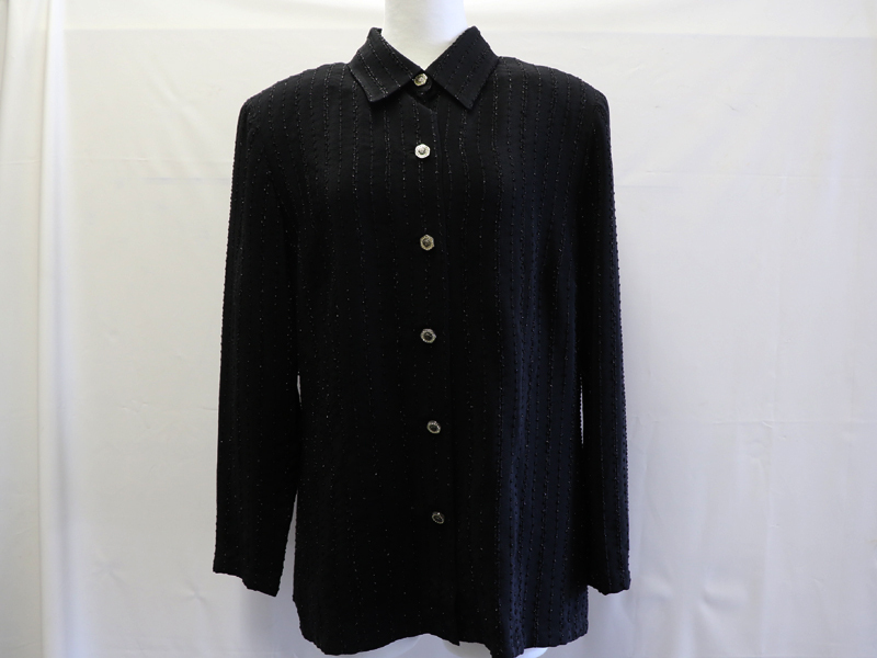 | 素材/カラー | ポリエステル100% ブラック | サイズ | サイズ44 (L) 【肩幅】約41.5cm 【身幅】約49cm 【着丈】約64cm 【袖丈】約56cm ※多少の誤差はご容赦ください。 |