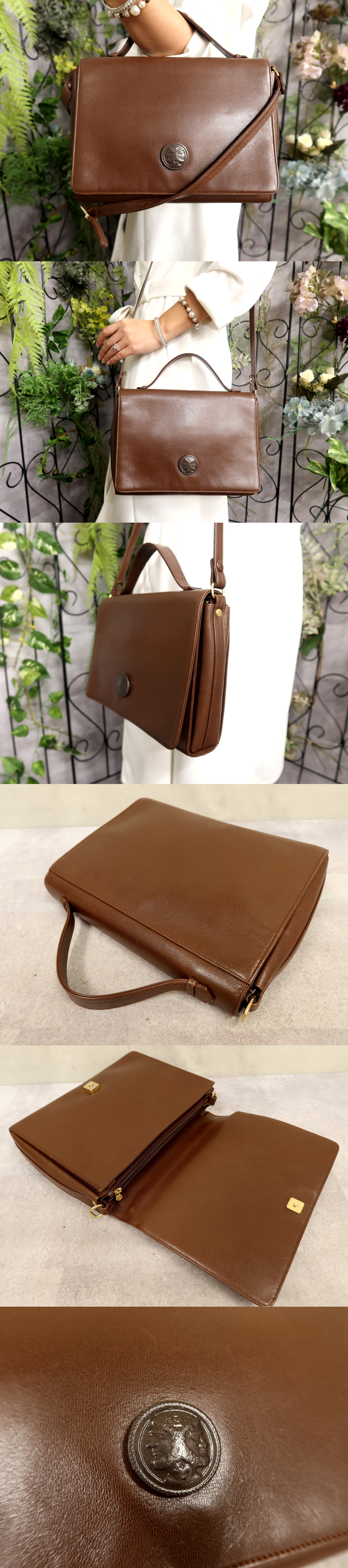 超美品●フェンディ●ギリシャモチーフ●ヤヌス神●カーフ レザー 本革●2way ハンド バッグ●ブラウン●G金具●ヴィンテージ●B5●Js61631 收藏