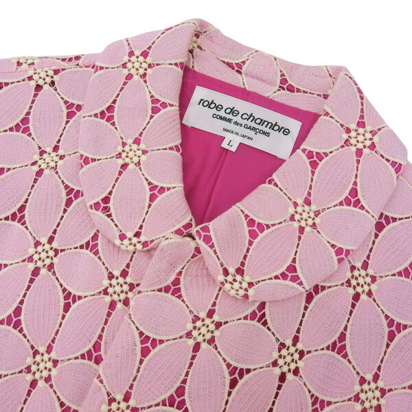 | 商品タイトル | COMME des GARCONS robe de chambre コムデギャルソン AD2000 RJ10006L 日本製 サイズL シルク混 花柄 織柄 レース ジャケット レディース ピンク |