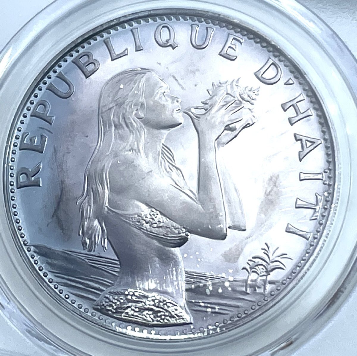 希少 1973年 ハイチ 貝を持つ少女 同グレード鑑定15枚 PCGS PR68DCAM 50グルード 銀貨 アンティークコイン 收藏