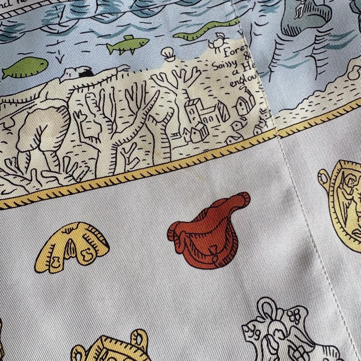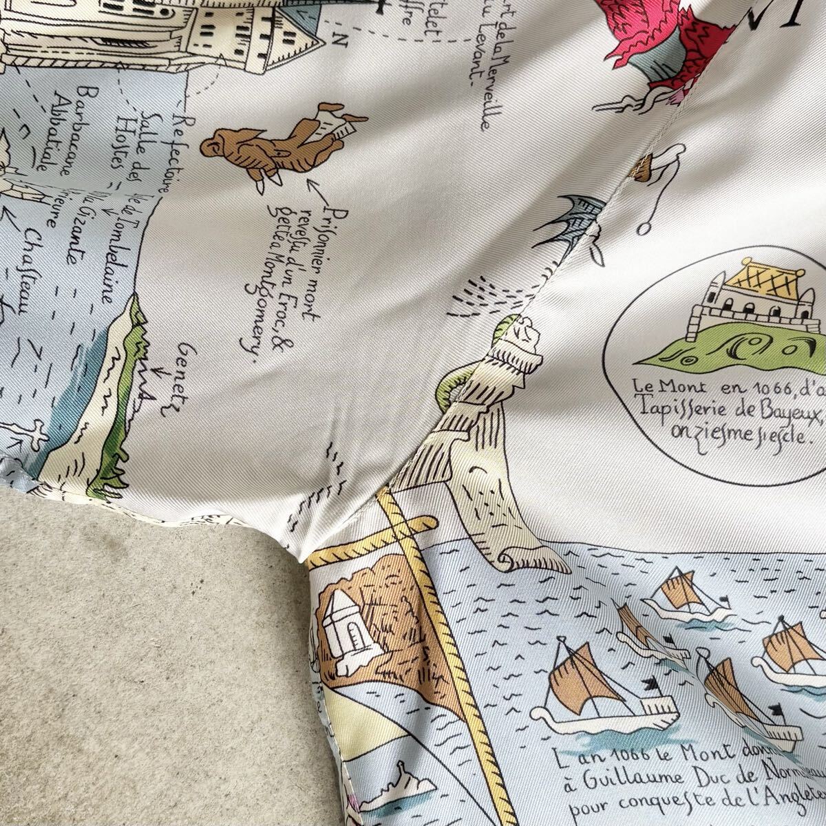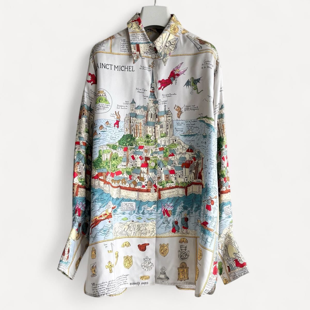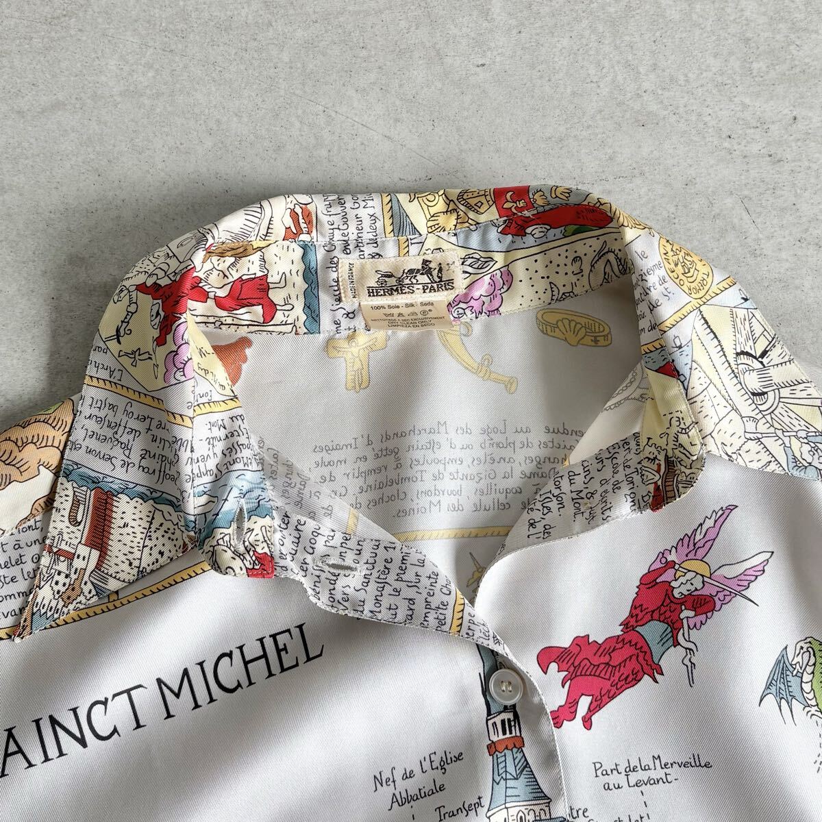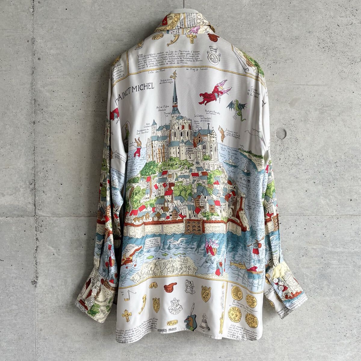 HERMES モンサンミッシェル シルクシャツ ヴィンテージ スカーフ柄 エルメス Mont Saint MICHEL カレ 長袖 收藏