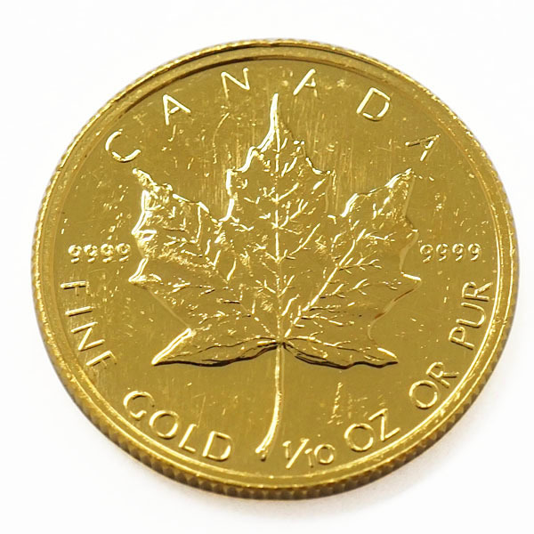【中古AB/使用感小】 24金 メイプルリーフ 金貨 1/10オンス 1/10oz ランダムイヤー カナダ 純金 K24 コイン 貨幣 k24-1-10oz-cana-ab 收藏