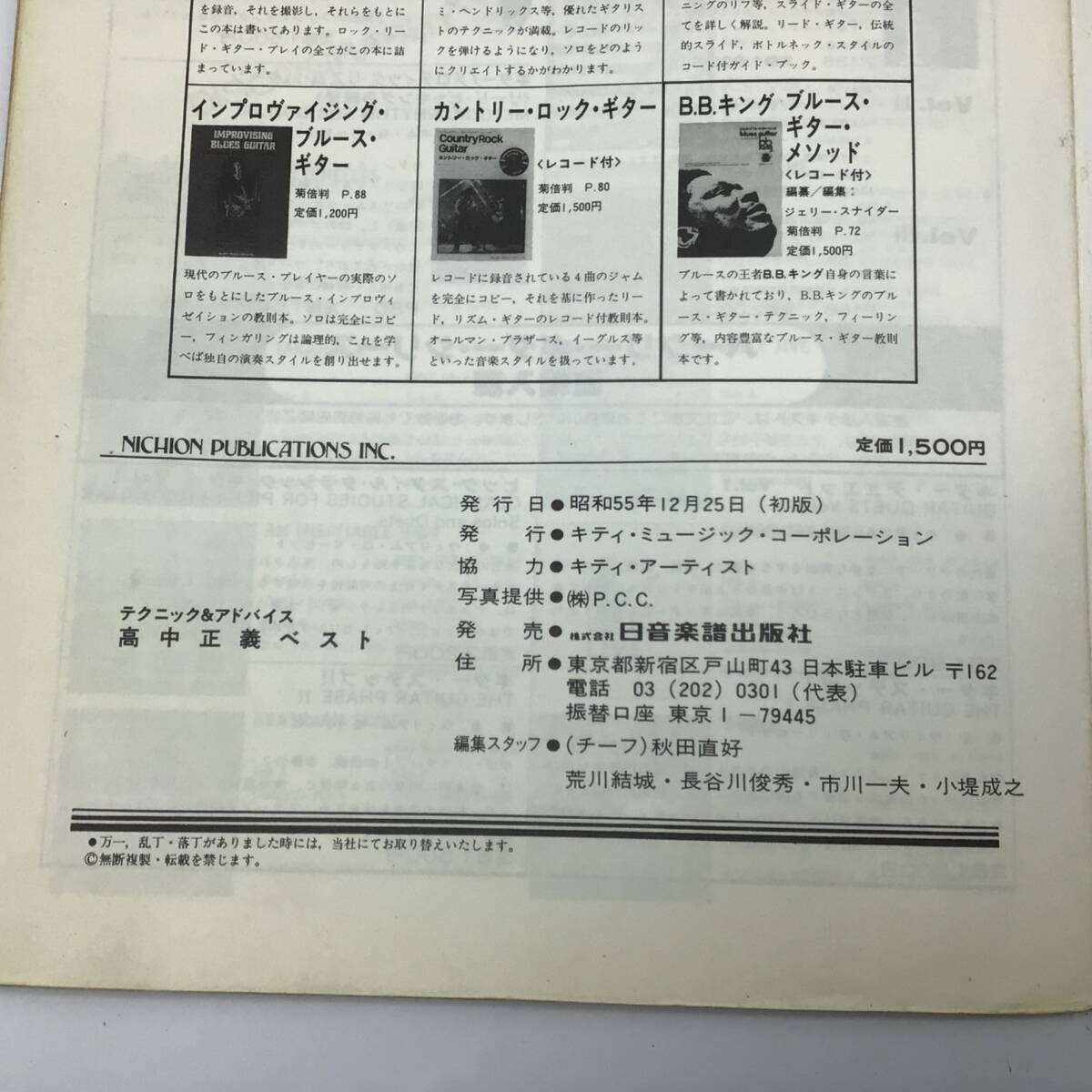 10468 高中正義 テクニック&アドバイス ベスト フィンガー・ダンシン&ベスト タブ譜付き 昭和55年初版 日音 楽譜 スコア 收藏