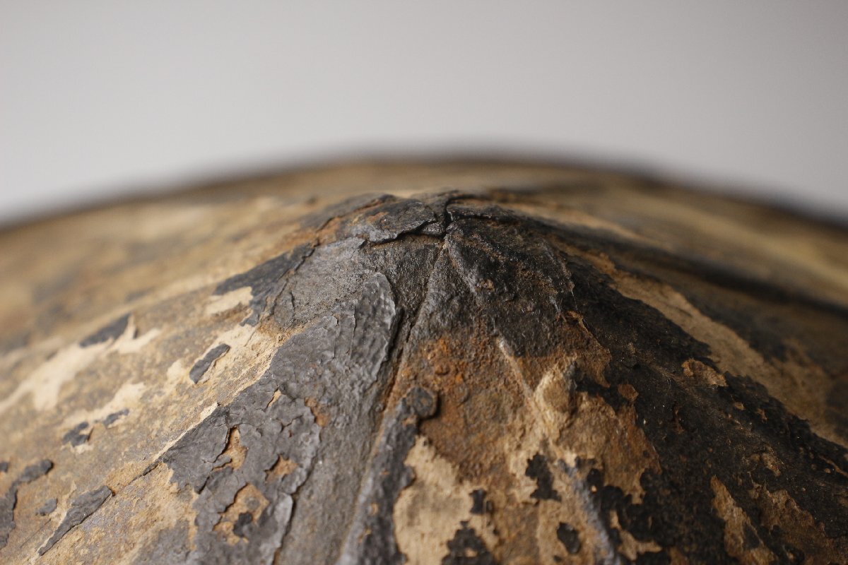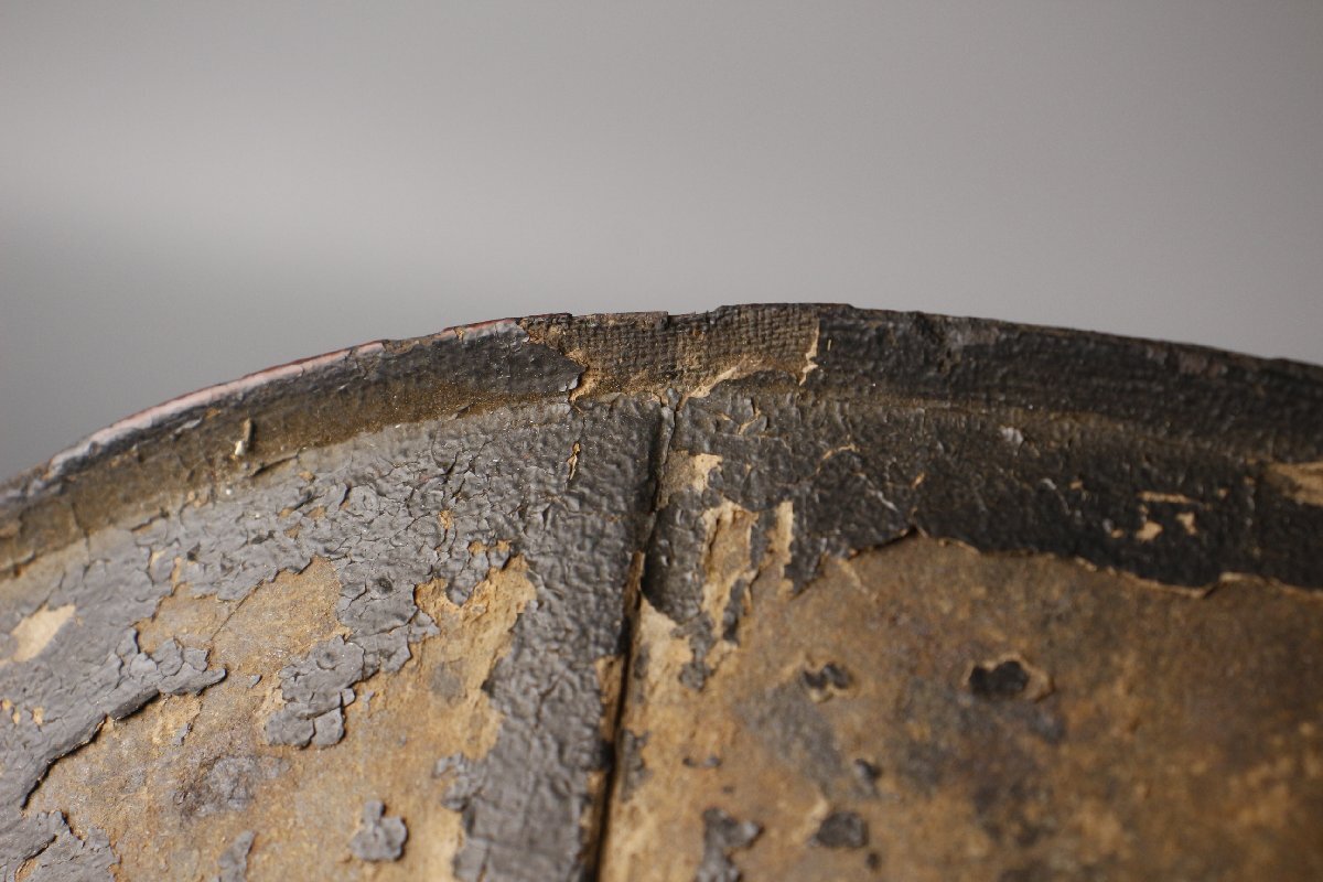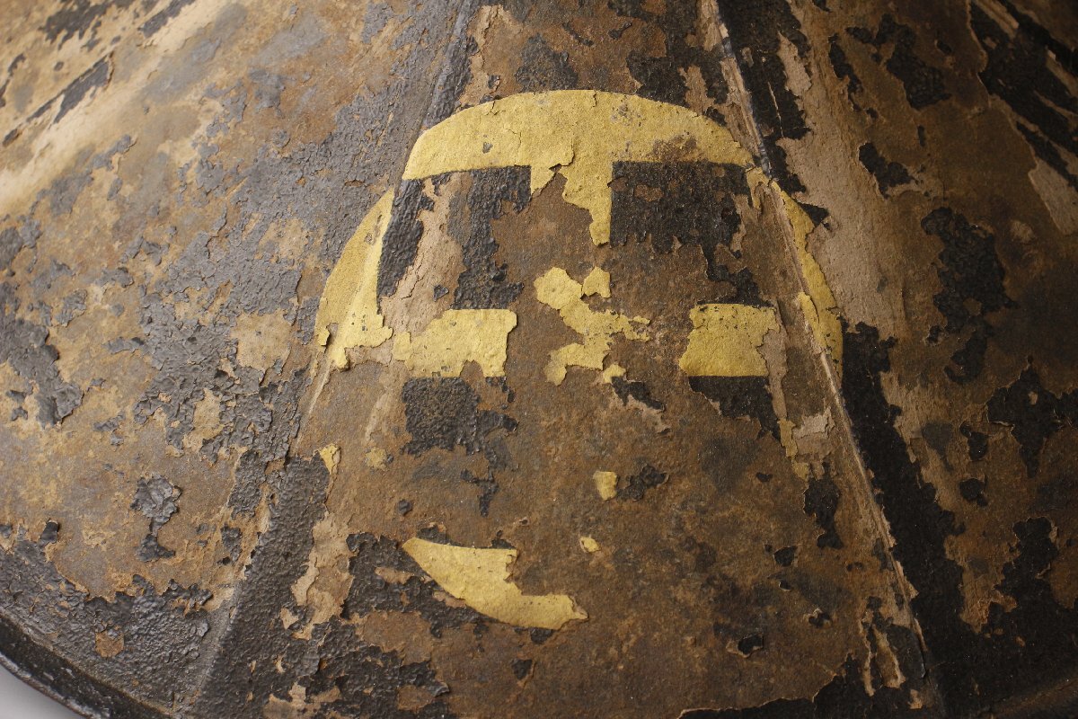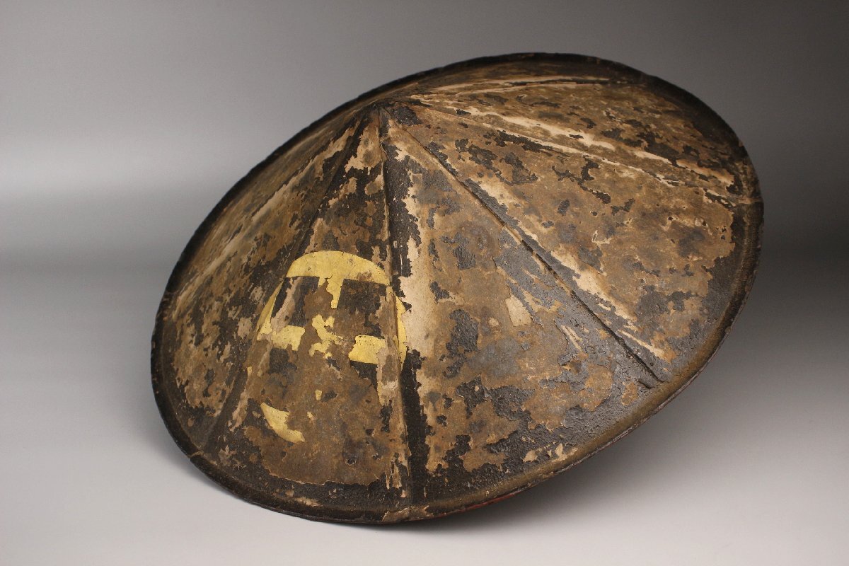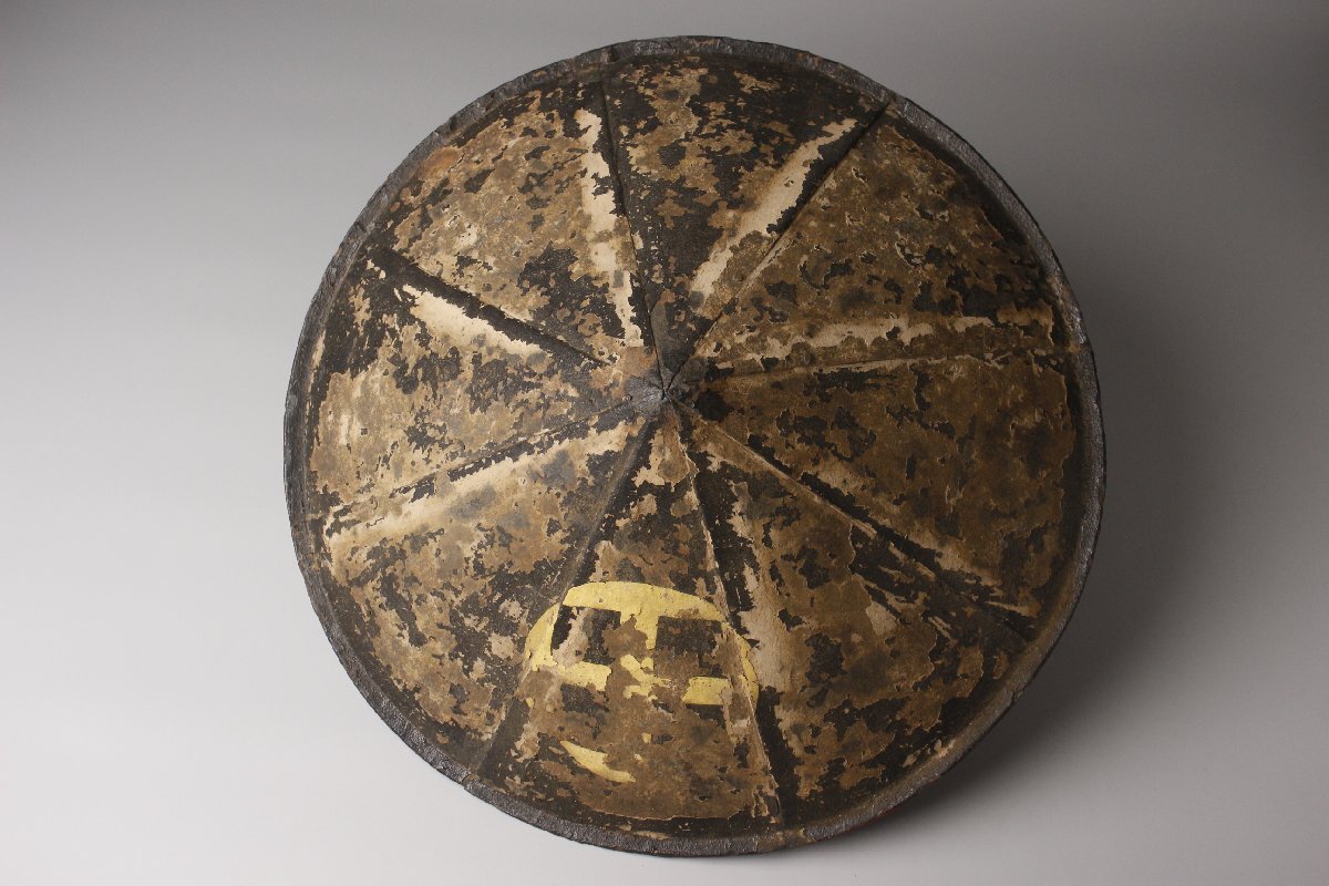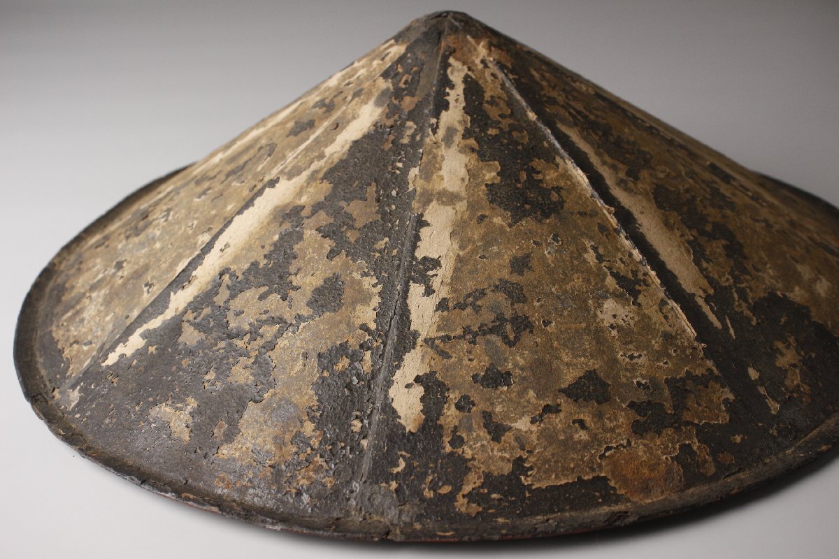 【LIG】江戸時代 鉄地 家紋入陣笠 甲冑 時代武具 旧家蔵出品 [P]25.10 收藏