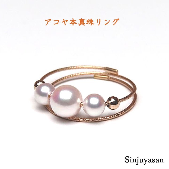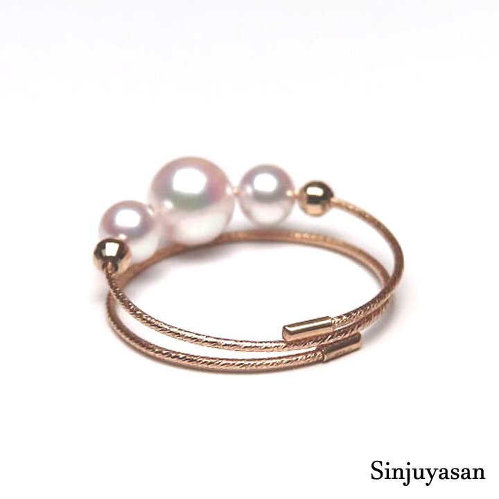 真珠屋さん 誰でも可愛い【フリーサイズ】ホワイトピンク 最高の色!5.9~4.2mm 3個 アコヤ真珠K18PGリング 18金 伊勢志摩特選パール 新品 收藏