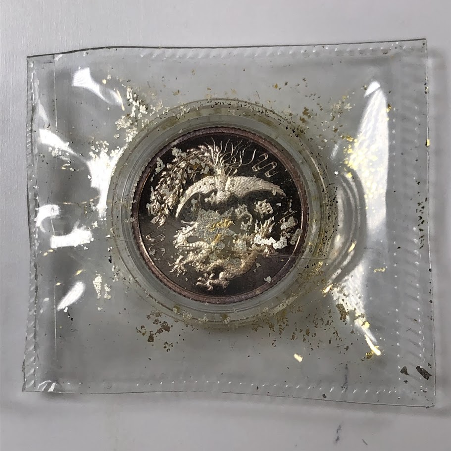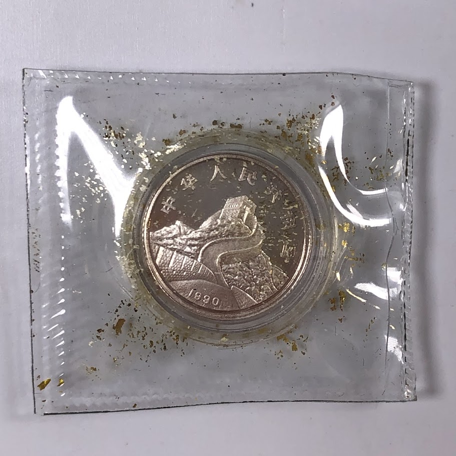 〇1990年 中国 龍 鳳凰 記念貨幣 5角 プルーフ 銀貨 1点 付属品:ケース、袋、証明書、箱(一部文字が書いてあります) 重量:約3.48g(ケース等を含む) X線実測値:Ag 約96.02%(ケース等を含む)