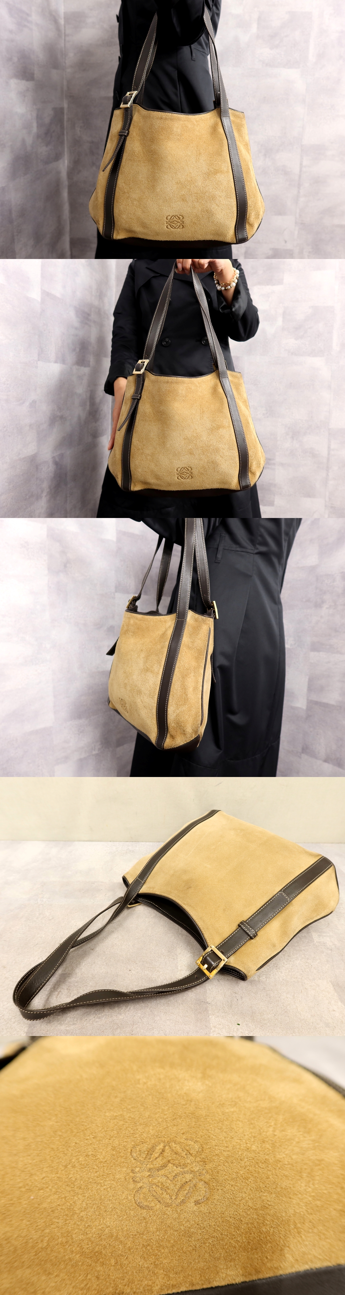 ●超美品●LOEWE ロエベ●アナグラム●ロゴ型押し●スエード カーフ レザー 本革●トート バッグ●ブラウン系●ゴールド金具●B5●Js62352 收藏