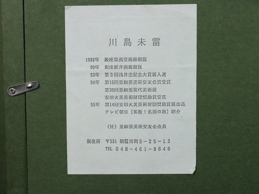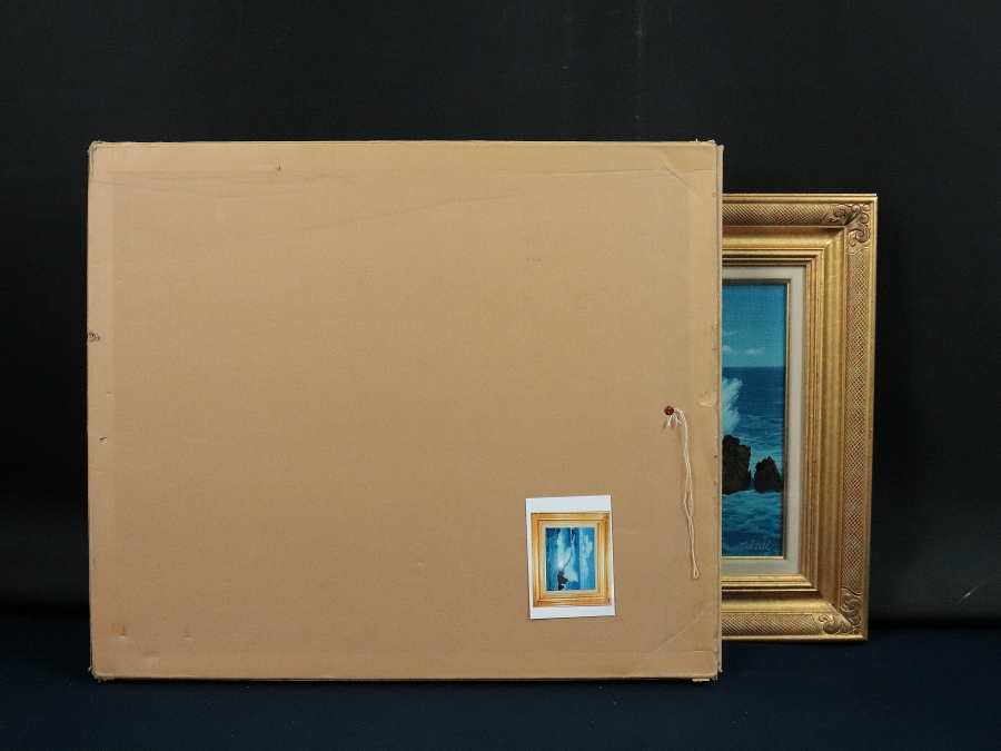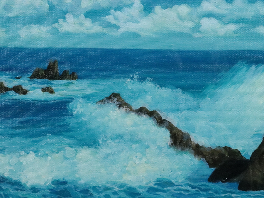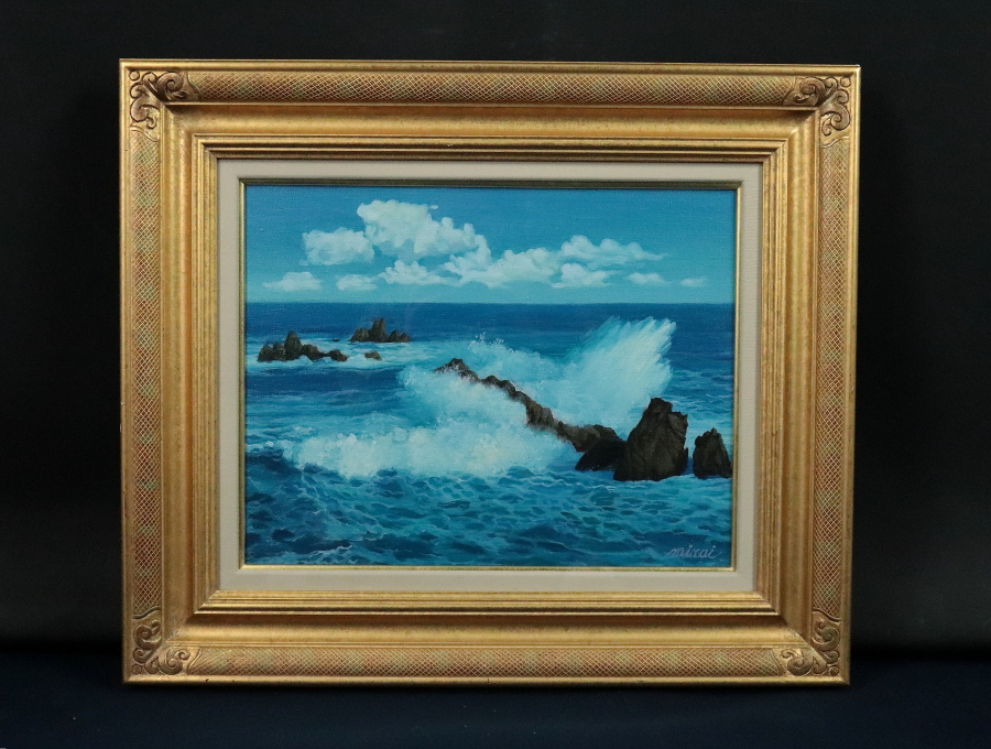 12038■【真作】川島未雷 「荒れる海」 キャンバス 油彩 肉筆 F6 現代洋画家 上海生まれ 額装 收藏