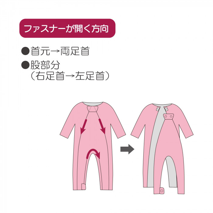 | 仕様 | 【ファスナーが開く方向】 首元→両足首 股部分(右足首→左足首) |