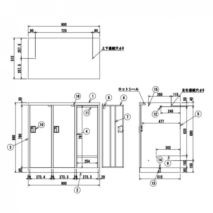 | 仕様 | 完成品 耐荷重:棚板10kg、ハンガーパイプ10kg 連結穴加工(上下・左右)8Φ シリンダー錠キー2個付 ハンガーパイプ付 棚付 |