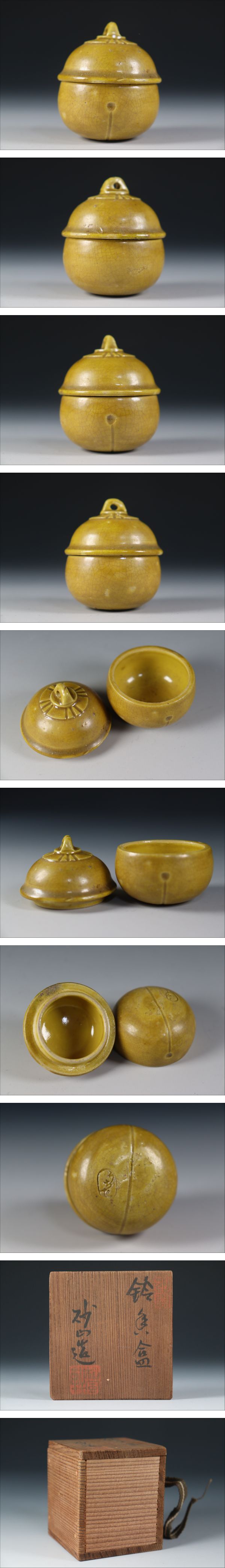 | 商品説明 | 商品名:蔵出し品 打出焼 阪口砂山 鈴香合 付属品:共箱、布あり。 サイズ:高さ5cm、口径4,2cm、高台2cm。 状態:無傷になります。 |