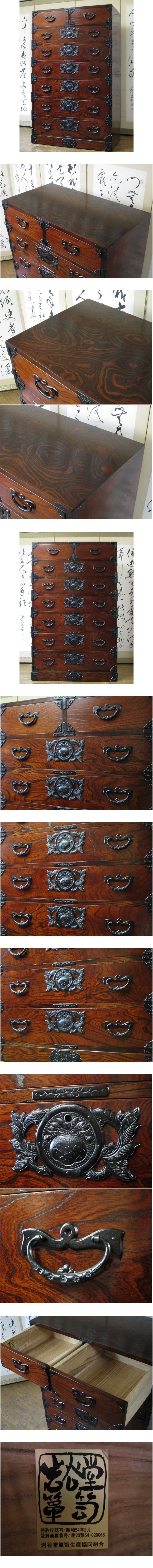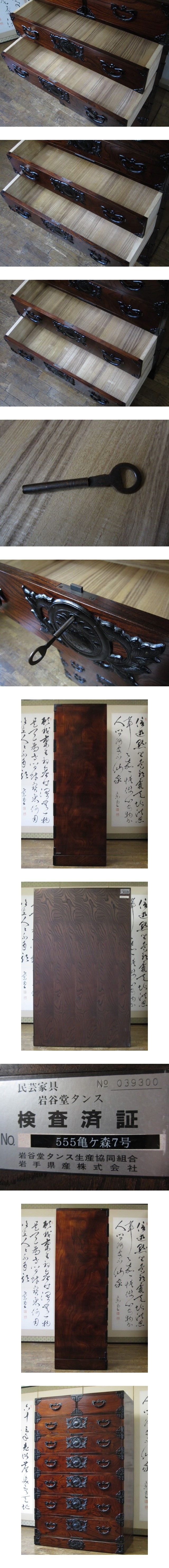 美品 伝統工芸 欅材 拭き漆塗 №555亀ケ森7号 7段 8杯抽斗 民芸 岩谷堂箪笥 鍵付き/衣装箪笥/時代箪笥/整理箪笥/抽斗/和家具 收藏