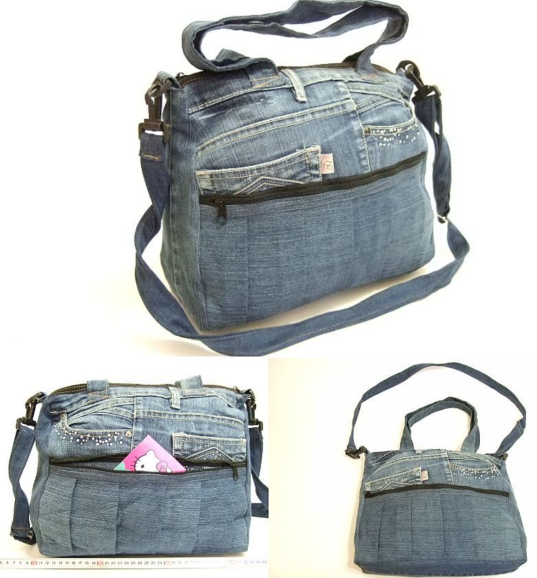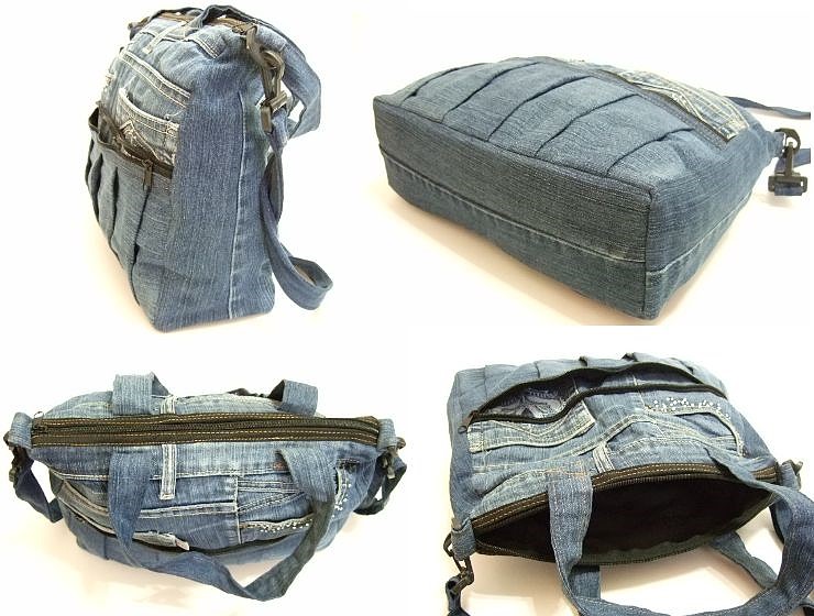 横浜最新 魅惑のデニム 手提げ&ショルダーツーウェイリメイクバッグ♪3連巾広チャック横巾32~40cm 縦28cm マチ11cm底板付 送料無料heia67 收藏