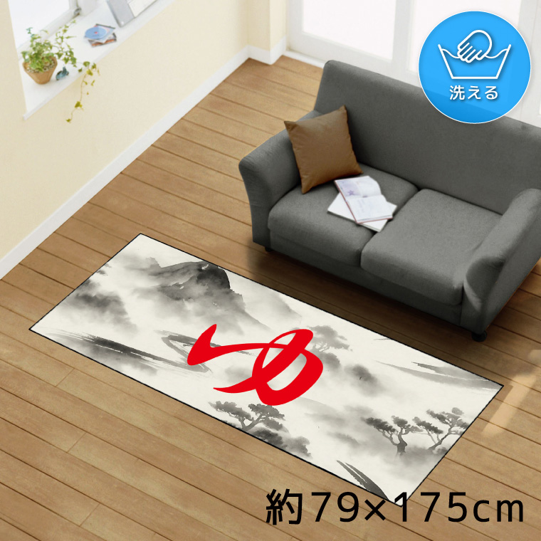 ラグ 洗える 北欧 約79×175cm カーペット イラスト アクセントラグ TEN172-C 水墨画1 ゆ レッド 收藏