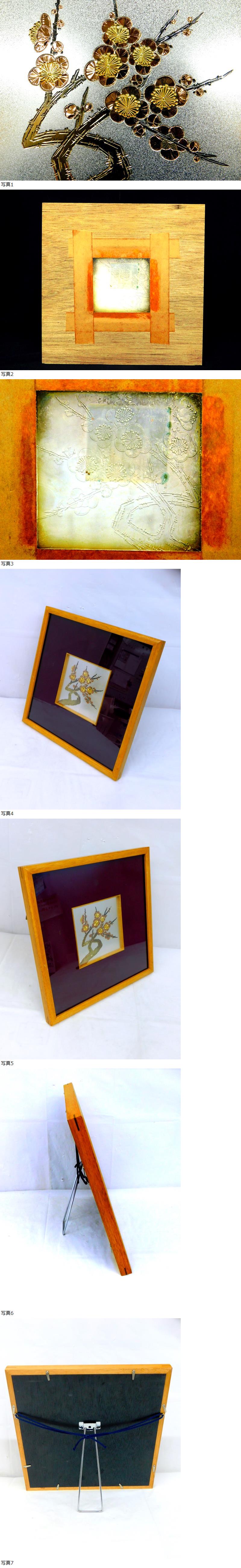 M203★彫金製品? 梅図 額縁 オブジェ 壁掛け 飾物 工芸品 美術品 額入り【縦 34.5×横34.5】★送料880円〜 收藏