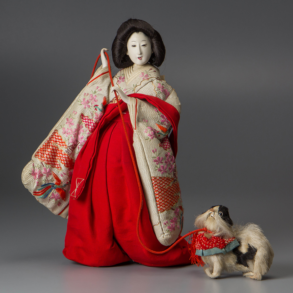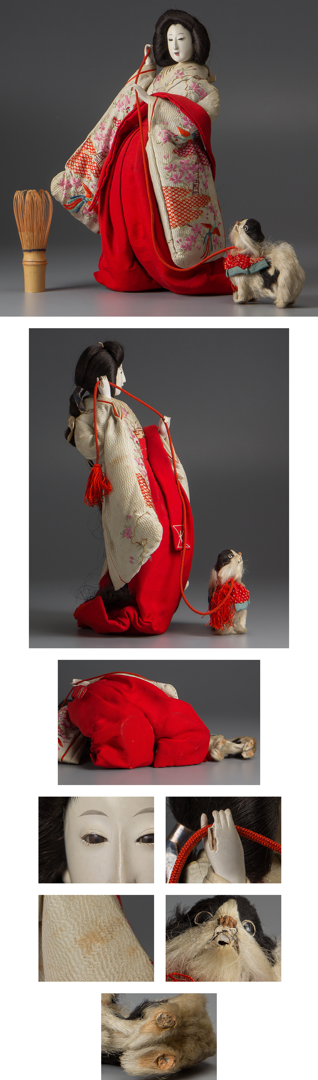 【五】京都 丸屋 丸平 大木平蔵 雛人形 狆引き官女 犬引き官女 明治時代 共箱 收藏