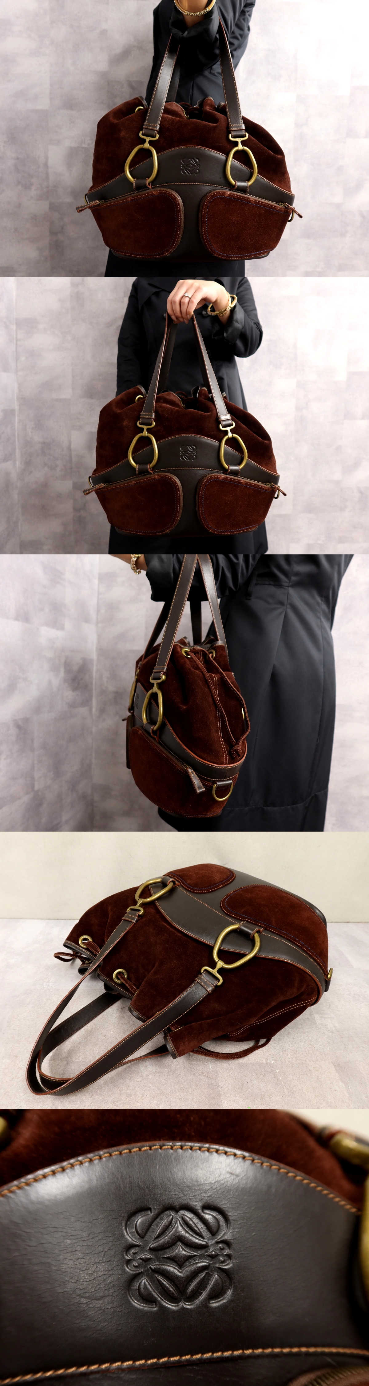 ●超美品●LOEWE ロエベ●アナグラム●ロゴ型押し●スエード カーフ レザー 本革●トート バッグ●ブラウン系●ゴールド金具●A4●Js65209 收藏