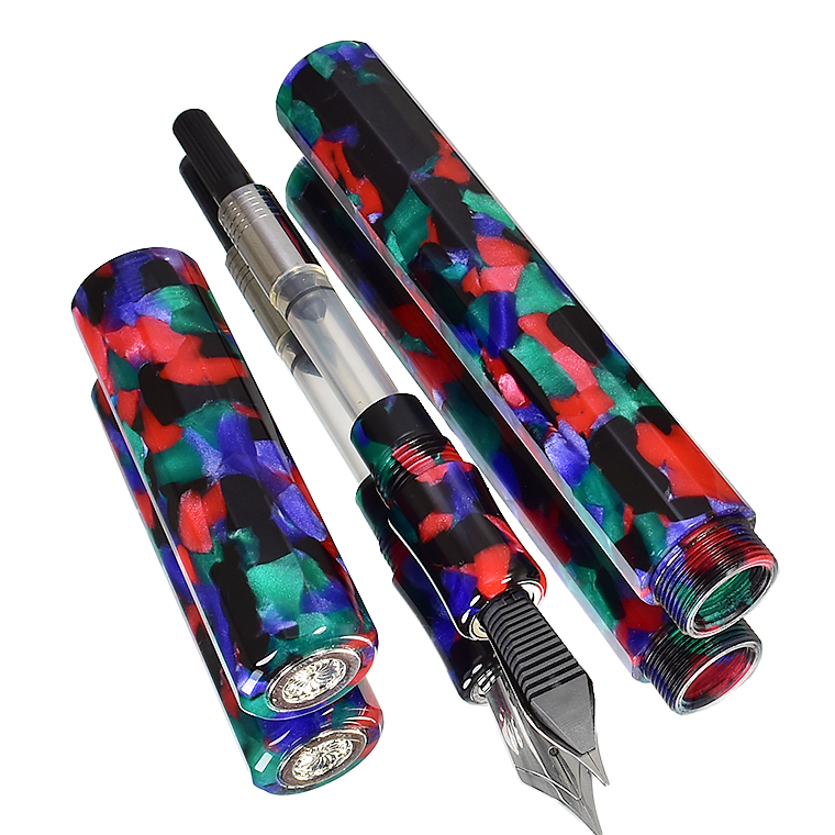 | 【WANCHER/ワンチャー】 カレイド 万年筆 「ブラック・夜祭り」 Jowo製 ペン先:EF(極細) 【今回はアウトレット品の出品となります】 真鍮製の天冠コインですが、文字刻印がなくロゴマークのみとなります。 またペン先はJowo製でロゴマークがないシンプルなタイプです。 ![]() ワンチャーより、創立10周年を記念する万年筆「カレイド」をご紹介いたします。 カレイド万年筆は、手頃な価格でスタイリッシュ、さらに、万華鏡のように 煌めく毎日を過ごしてほしいという願いが込められています。 この万年筆は、皆様へのご愛顧を感謝すると共に、万年筆をこよなく愛する方々、 新たに興味をお持ちの方々のために生まれました。 商品名の由来となった「カレイド」は古代ギリシャ語の「Kal(美しい)」と「eidos(形)」から 生まれた造語です。 カレイドスコープ(万華鏡)を覗いたときのようなトキメキを万年筆で表現しました。 ![]() 今回の出品はこちらの”ブラック・夜祭り”です 幼き日に夏祭で見た屋台や人の賑わい。 夜をイメージした黒に、色褪せない思い出が鮮やかによみがえります。 ![]() カレイド万年筆の多色マーブルが織りなす不思議な美しさは、 透明感と硬度をもたせたアクリルレジンを何度も切り出し、加工を行い、 それを丁寧に磨き上げて作ります。 特にボディの直線と平面の中にやわらかい光が見えるのは、 磨き上げるときに生まれた微細なウェーブによるものです。 ![]() JoWooドイツ製#6サイズのペン先が生む、滑らかな書き味 12角柱の超大型ボディでありながら、滑らかな書き味を生む秘密はペン先にあります。 JoWoドイツ製大型#6サイズのペン先はJAPANカレイド万年筆の威厳に負けない存在感。 加えて世界各国で愛用されてきた実績を持つペン先は、何時間でも書き続けたいと思わせてくれます。 ![]() 頑張った自分へのご褒美に、大切な方へのプレゼントに 12角柱の特別なデザイン・仕様の万年筆をぜひ、コレクションに加えてみてください。 お使いの際は下記にご注意ください ●大型サイズの万年筆なので、洋服のポケットにさしてのご利用には向きません。 ●キャップを軸エンドにさすタイプではありません。必ず、デスク上に置いてください。 ●大型サイズなので、小さな手帳に書き込むことには不向きです。 ![]() 【キャップの回転数について】 カレイド万年筆は他の万年筆と比較してキャップ開閉時の回転数を増やしています。 キャップを閉めたときに12角形の角を揃えるため、そして、インクの乾燥防止として インナーキャップだけでなく、より気密性を高めるための仕様となります。 ![]() ******************************************* <詳細>【WANCHER / ワンチャー】カレイド 万年筆 ブラック・夜祭り 天冠真鍮コイン(マークのみ) ペン先 :ステンレススチール/ドイツ製JOWOニブ サイズ :EF(極細) ※WANCHERロゴなし 機構 :コンバーター・カートリッジ両用式 長さ :150mm 太さ :17mm 重さ :32g 材質 :アクリルレジン 天冠 :真鍮製(ロゴマークのみ・文字刻印なし) 付属品 :WANCHERケース、コンバーター、カートリッジ 新品 アウトレット 【今回はアウトレット品の出品です】 今回は真鍮製の天冠コインですが、文字刻印なくロゴマークのみとなります。 またペン先はJowo製でロゴマークがないシンプルなタイプです。 品質には問題はございませんが、予めご了承の上、ご入札をお願いいたします。 それ以外に全体的に薄い線が入っている場合がございますが、 モザイク模様が表面に出ることによる線ですので、 こちらも併せてご了承ください。 ******************************************* |