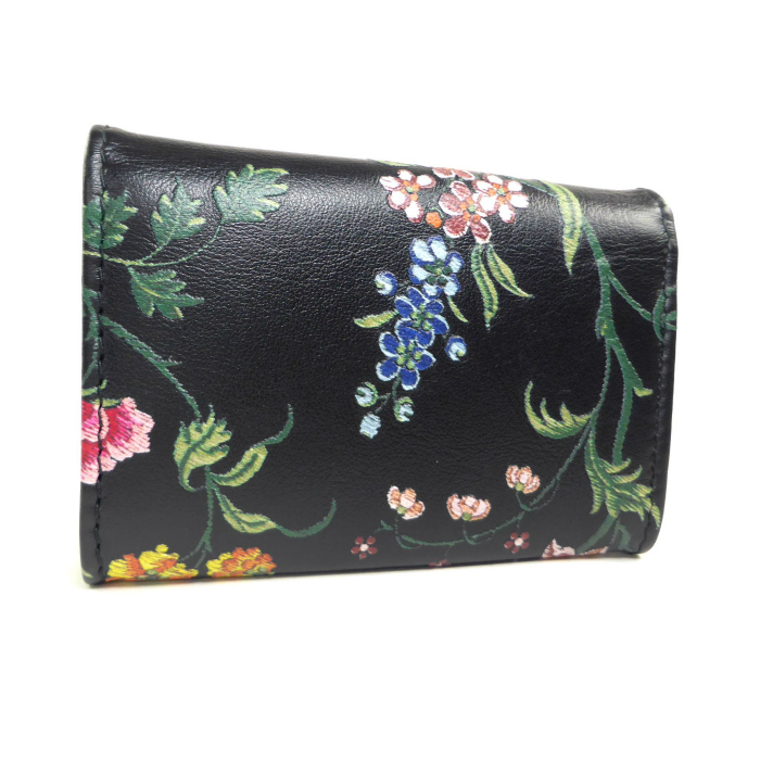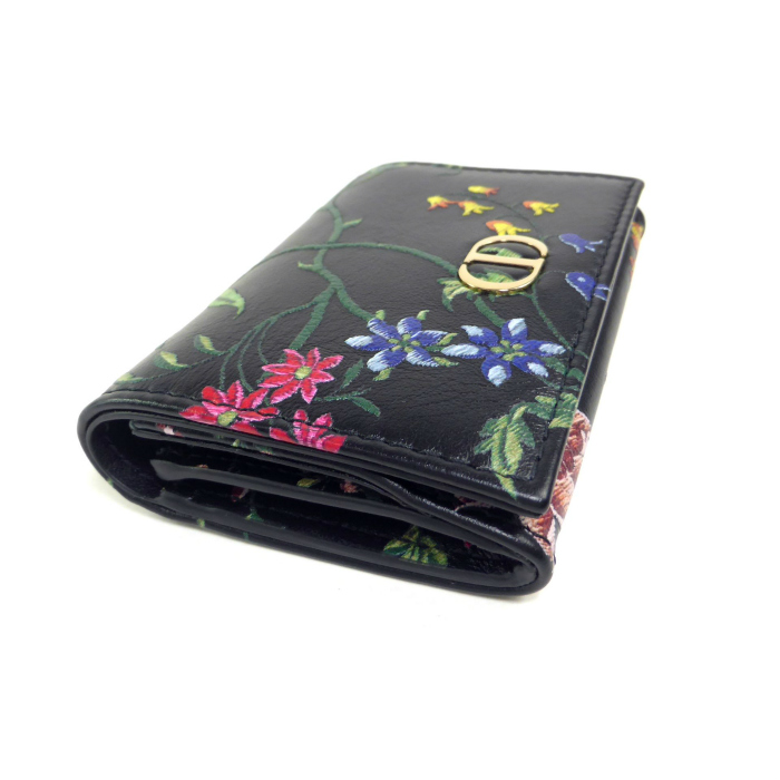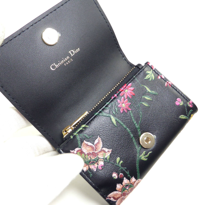 クリスチャンディオール (Christian Dior) CARO Glycine ミニ ウォレット フラワー 刺繍 二つ折り 財布 ブラック(未使用品)中古 收藏