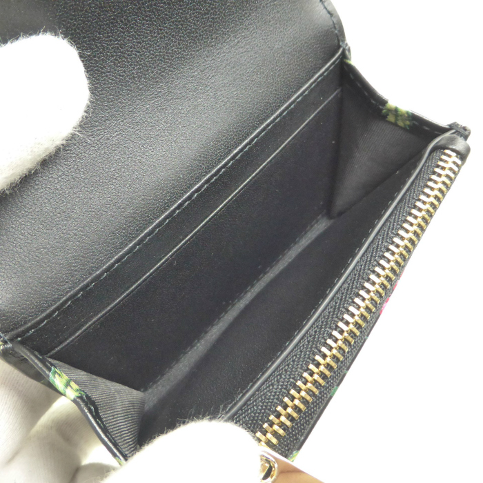| クリスチャンディオール(Christian Dior) CARO Glycine カロ ミニ ウォレット フラワー 刺繍 二つ折り コンパクト 財布 ブラック(未使用品)中古 |