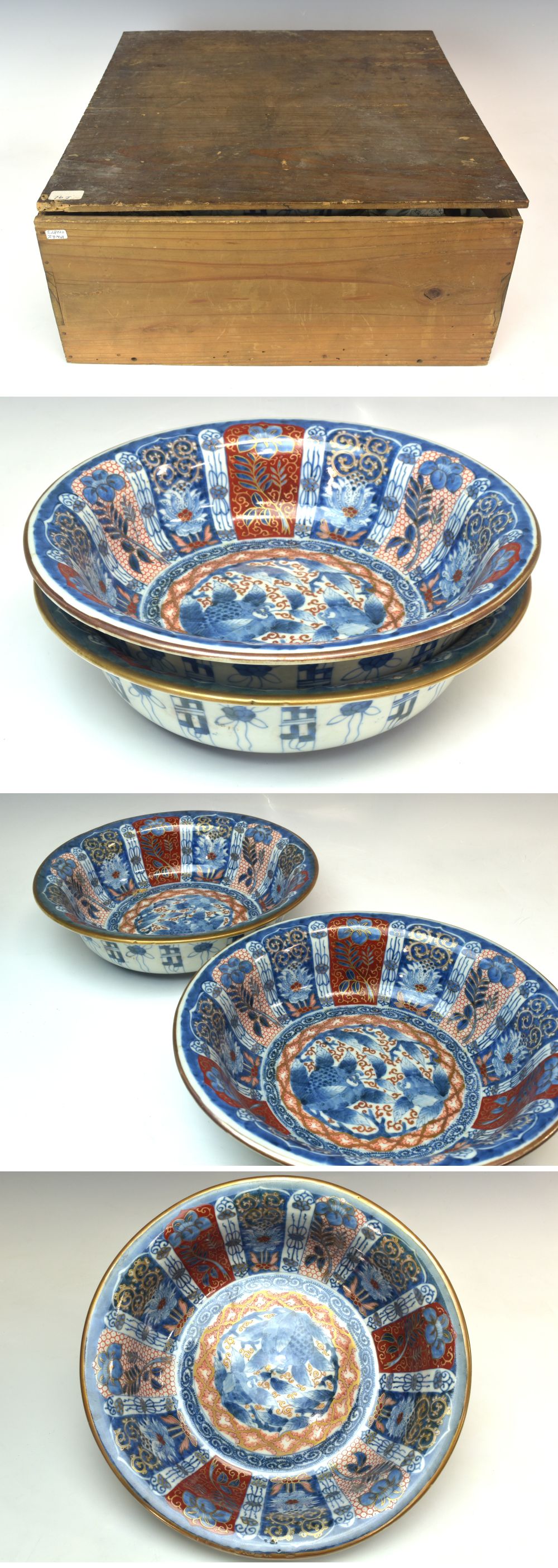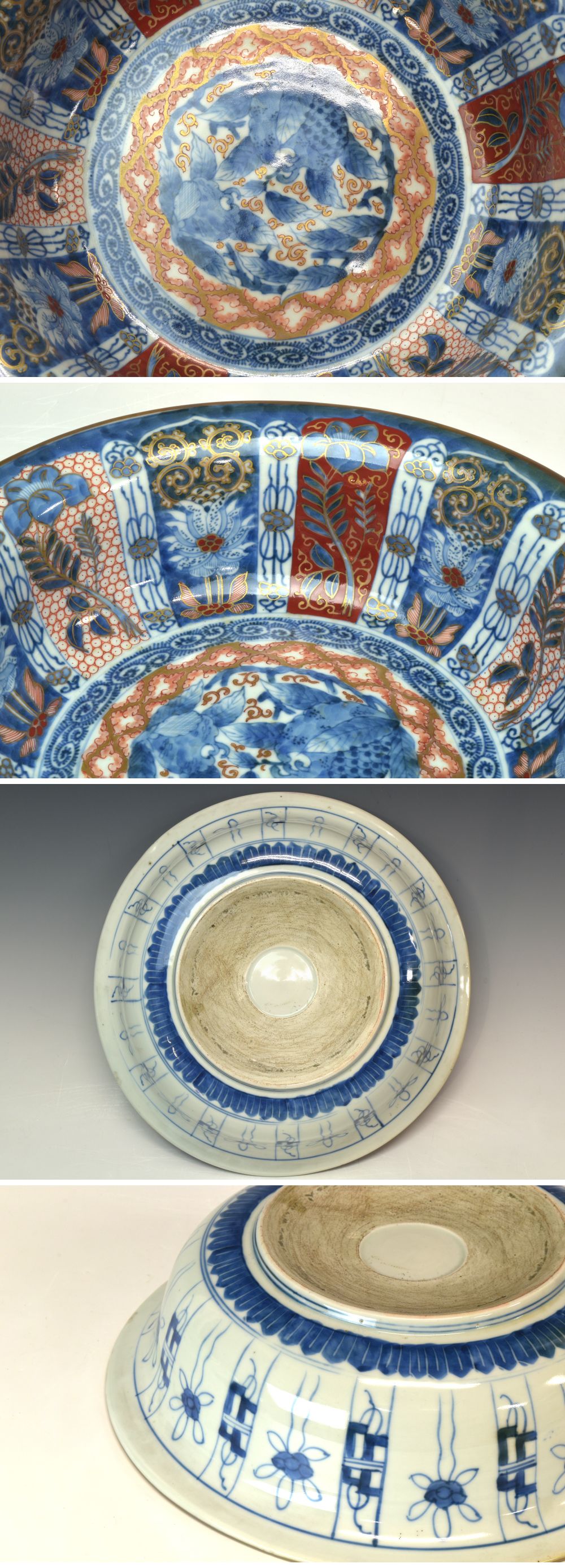 幕末明治期 『古伊万里 染錦細密絵付け草花文鉢二点』 直径29,8cm30,3cm 本物保証 A2251【趣楽】 收藏
