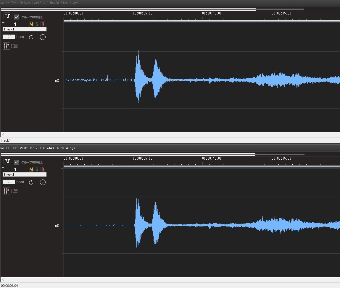 無音溝の部分が顕著で、楽音部分の小さいヒゲが少なくなっています。