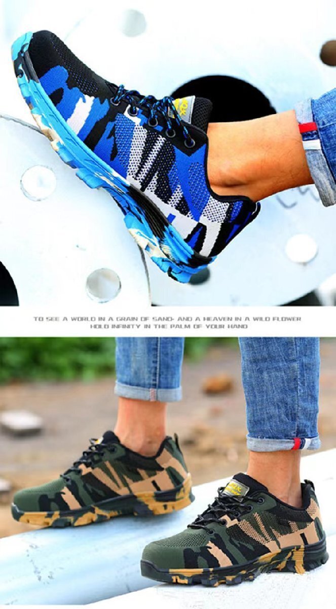 OHJ039☆新品 鋼鉄先芯安全靴メンズトレッキングアウトドア 作業靴釘踏み抜き防止防滑 通気 迷彩柄 カジュアル 收藏