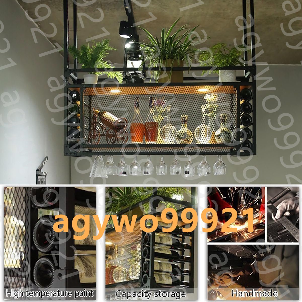 吊り下げ式酒瓶棚 ワイングラスホルダー付き 多機能酒瓶ディスプレイ収納ワインディスプレイラック 120x30x55cm 收藏