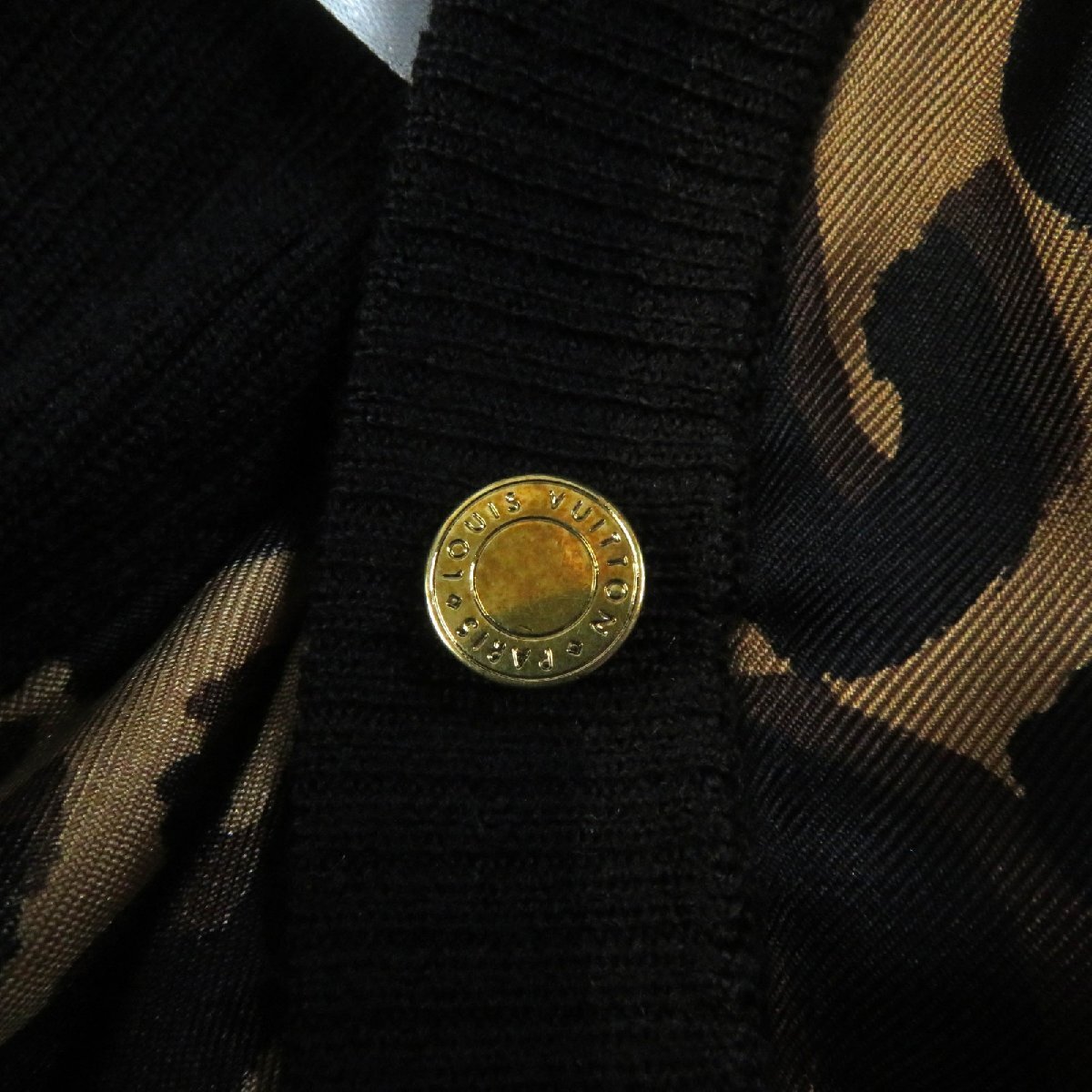 美品★LOUIS VUITTON ルイヴィトン ロゴボタン付 レオパード シルク切替 Vネック ウール カーディガン ブラック ブラウン XS 正規品 收藏