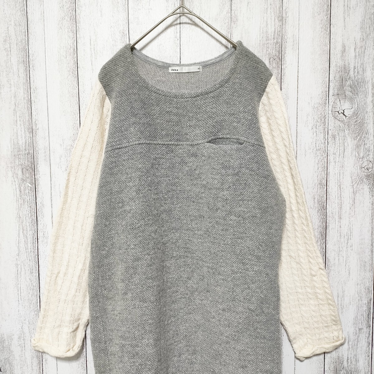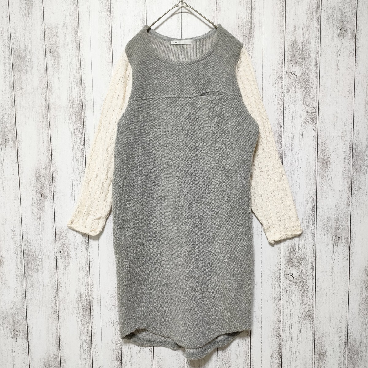 ikka イッカ (M) 異素材コンビワンピース 胸ポケットあり 收藏