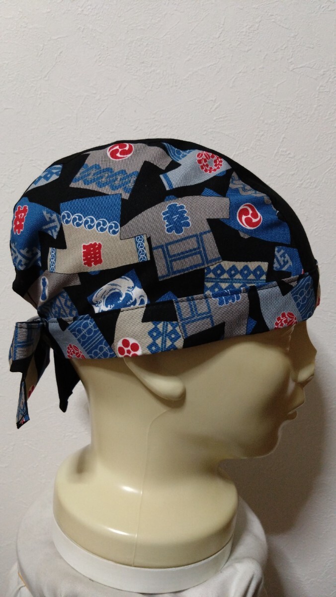 短★バンダナキャップ★ハンドメイド 和柄 祭り×無地 はっぴ 法被 黒 收藏