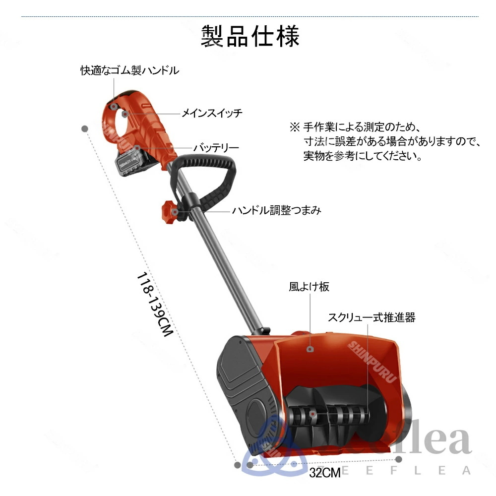 雪かき 電動 スコップ 家庭用 電動除雪機 除雪機 充電式 コードレス除雪機 雪かき 電動 21Vバッテリー*1 充電器*1 除雪幅30cm 除雪器具 收藏