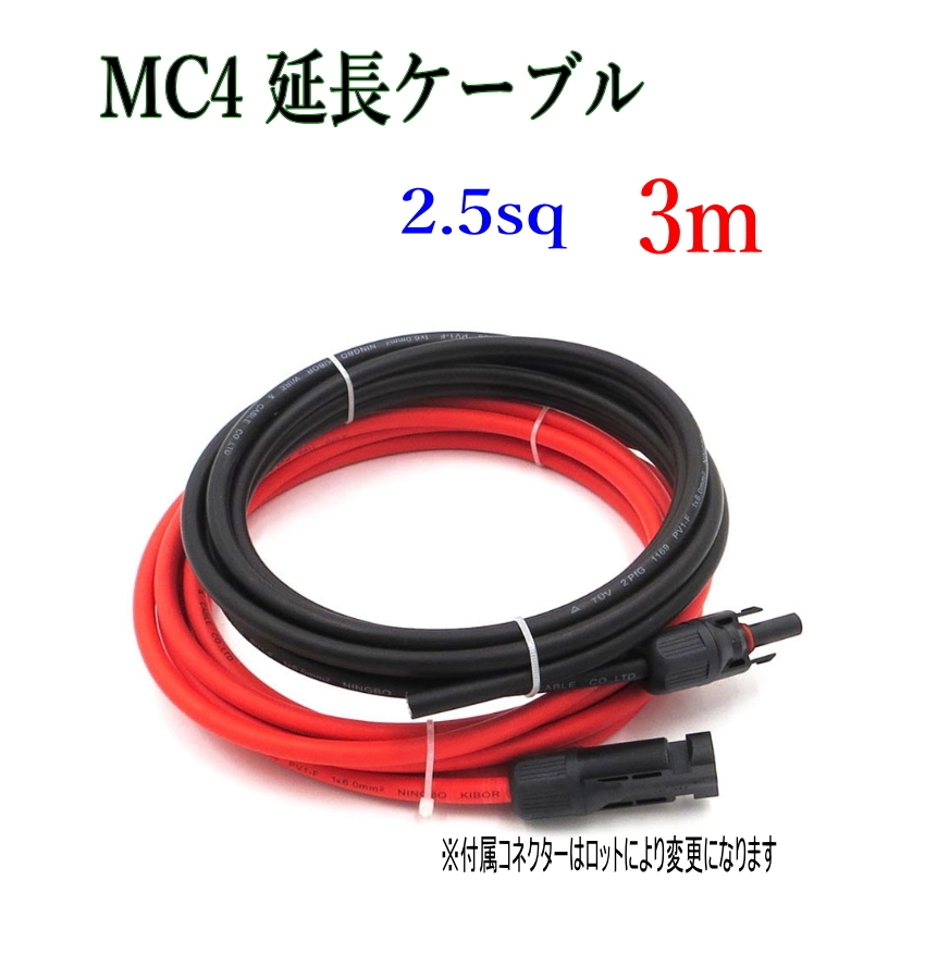 ソーラーケーブル延長ケーブル MC4 片側コネクタ付き 3m 2.5sq 赤と黒2本セット 收藏