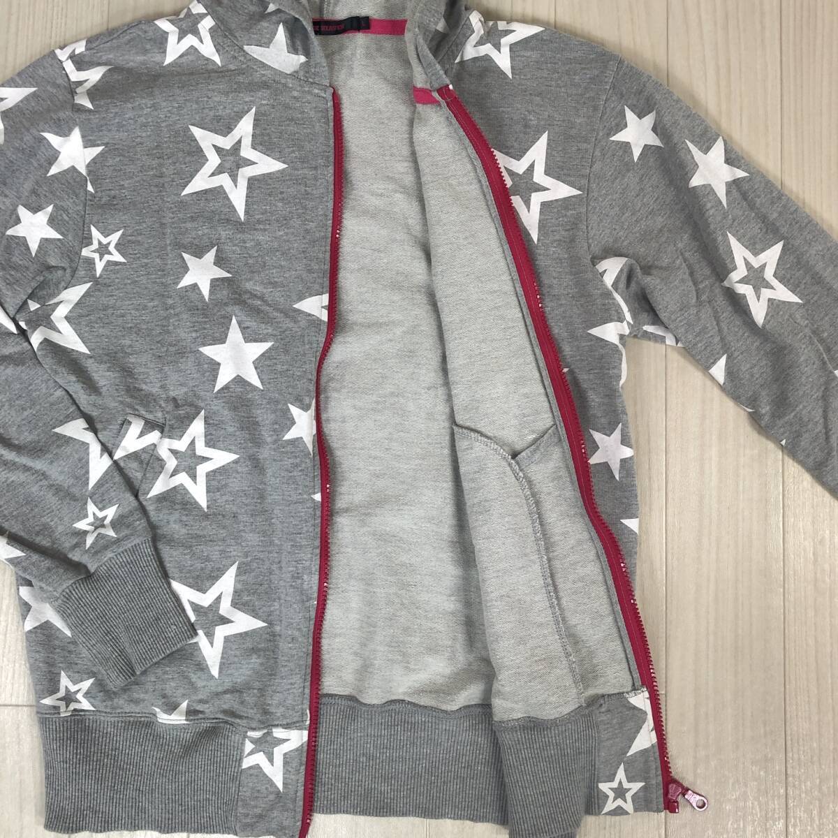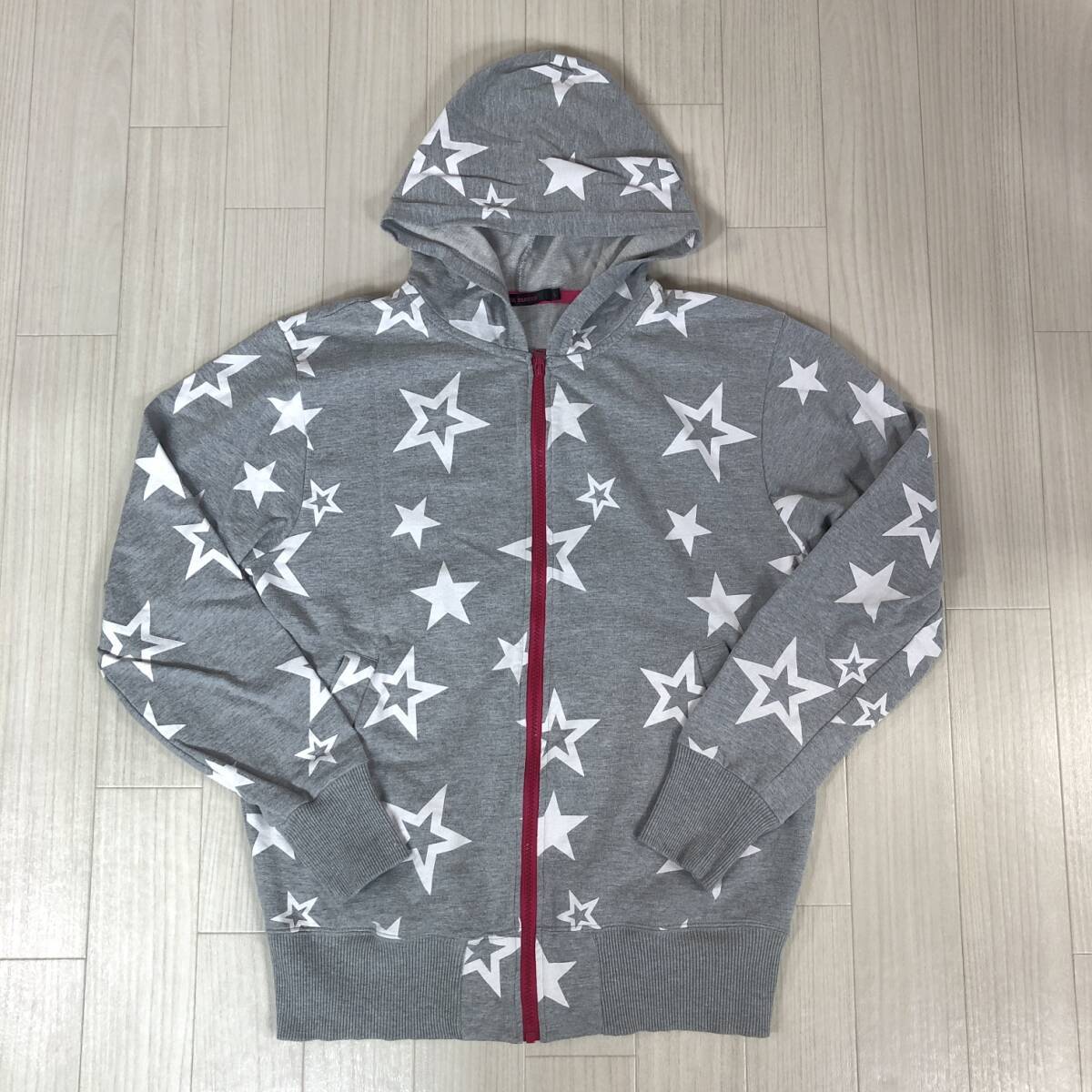 ZY0864 Lock Heaven ロックヘブン メンズ トップス ジップパーカー 長袖 Lサイズ グレー 灰 ピンク 桃 綿100% コットン 星柄 カジュアル 收藏