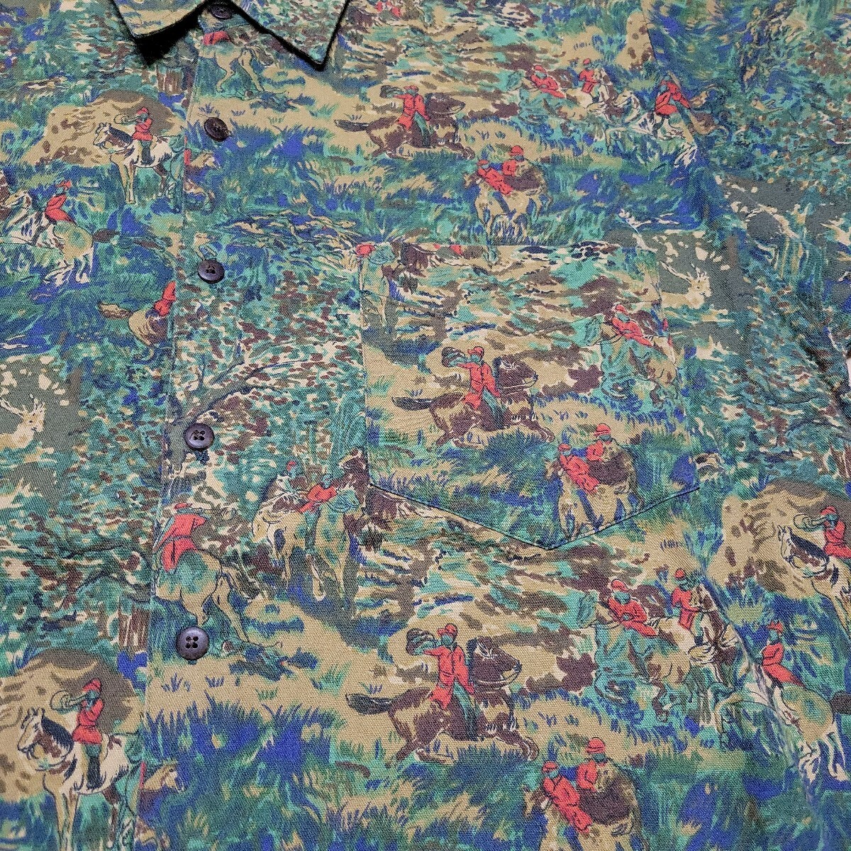 ハンティングモチーフの総柄で、珍しい柄かと思います。