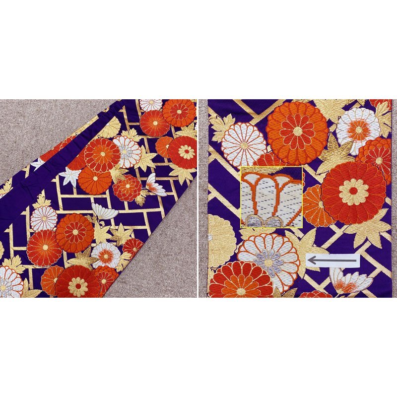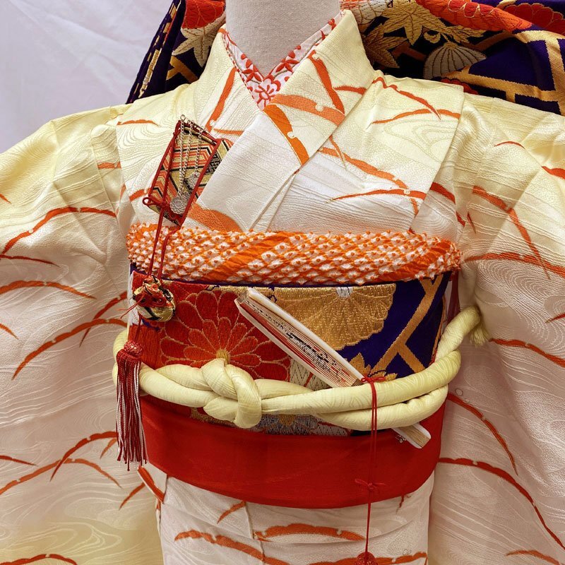 | ◎七五三 七歳 女児 セミアンティーク 金彩 着物&袋帯&長襦袢 雪芝文様 蒸栗色、オフホワイト◎ (No.n) 流水文様が浮かび上がる蒸栗色とオフホワイトの地に、雪芝文様が可愛らしい7歳七五三のセミアンティークお着物と袋帯のセットです(長襦袢はおまけでお付けしますが、その他の小物はセットに含まれません)。金彩が施されております。赤い鹿の子文様の比翼付きです。 袴と合わせてハーフ成人式や小学校の卒業式にもご利用いただけます。 画像のお小物類(帯揚げ、帯締め、しごき、筥迫、末広)は別途6000円です。 (着物)引っ掛け跡、画像のような薄いシミが他にもところどころにございますが、お着付けで隠れたり、目立つものではございません。セミアンティークの風合いとお考え下さい。 (長襦袢)袖丈の合うものをおまけでおつけいたしますが、中古品のためシミ汚れがある場合がございます(素材はお選びいただけません)。白い半衿が付いております。 (帯)数か所極薄いシミがございますが、画像のように近くでよく見ないとわからない程度です。 【素材】(着物)正絹、(帯)正絹 【色】蒸栗色、オフホワイト *モニターによって色味は実際と異なる場合がございます。 【サイズ】(着物) 裄:47.9cm、肩上げ:5.6cm、袖幅:31.3cm、袖丈:73.5cm、丈(肩から):129.7cm、腰上げ:-cm、前幅:20.7cm、後幅:26.1cm (帯) 幅:26.2cm、長さ:350cm *素人採寸のため、多少の誤差はご容赦ください。 お求め安い価格での出品ですので、いかがでしょうか? | |