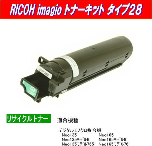| 対応メーカー名: RICOH 対応商品名 : imagioトナーキットタイプ28ブラック ≪リサイクル≫ |