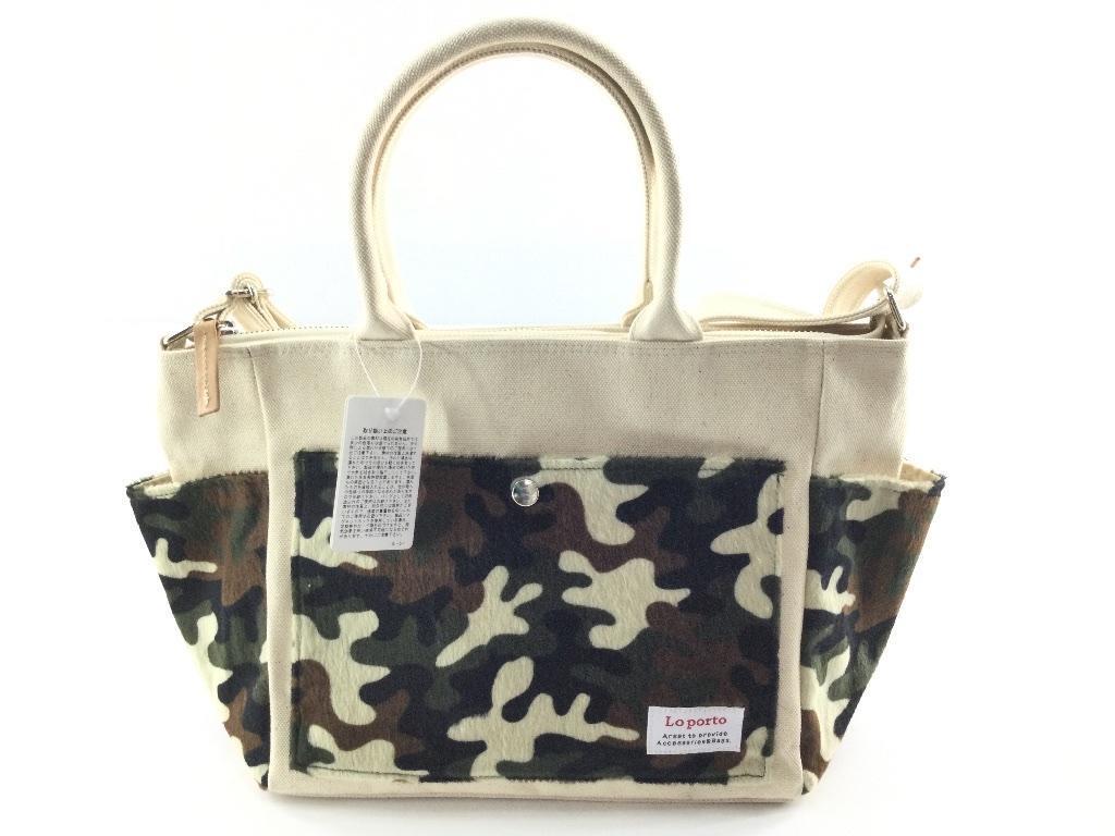 帆布 トートバッグ ハンドル牛革 内外ポケットあり Lo porto ルポルト 日本製 迷彩 生成り 收藏