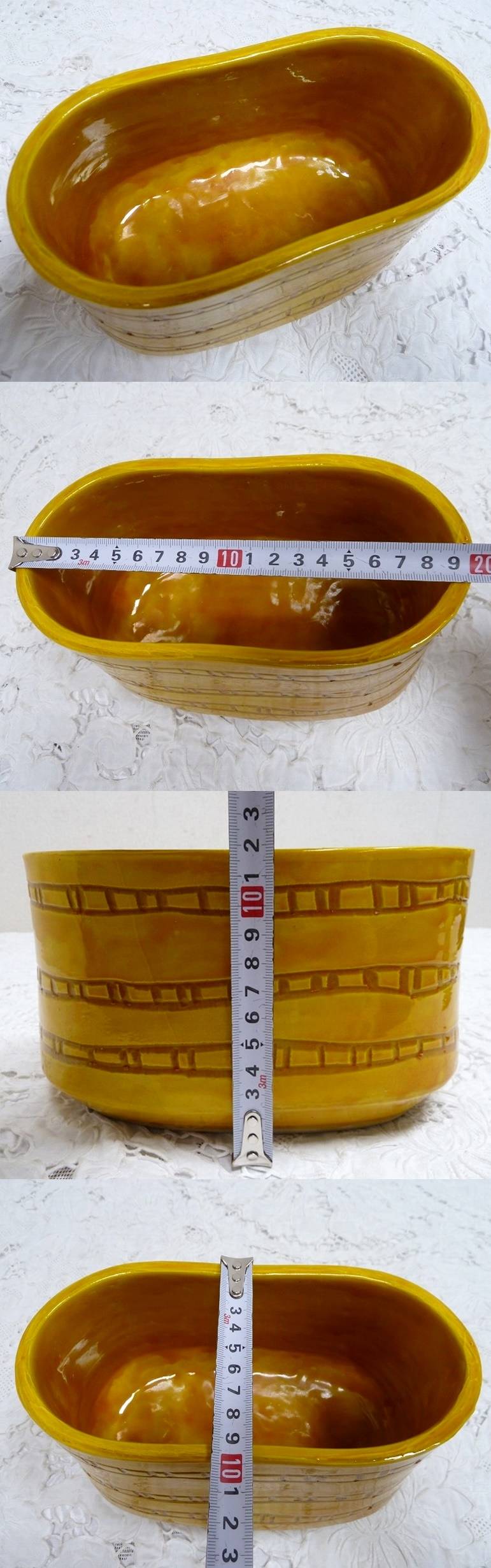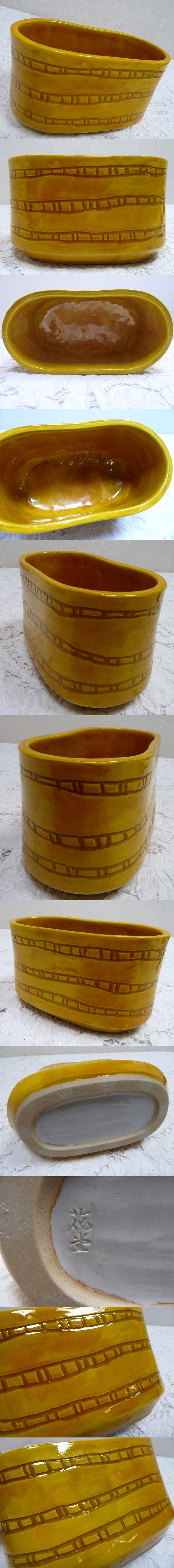 (☆BM)陶器製 陶印あり 花器 花瓶 水盤 花入れ 華道具 黄色 イエロー フラワーアレンジメント オーバル 楕円形 收藏