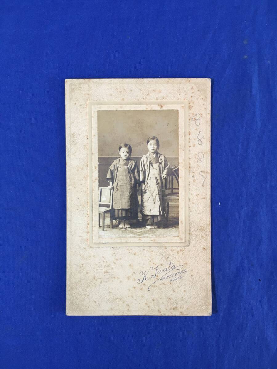 AG109イ●戦前 明治期? 【古写真】 岩田清写真館 女の子2人 着物 和装 名古屋市南大津町 厚台紙付 レトロ 收藏