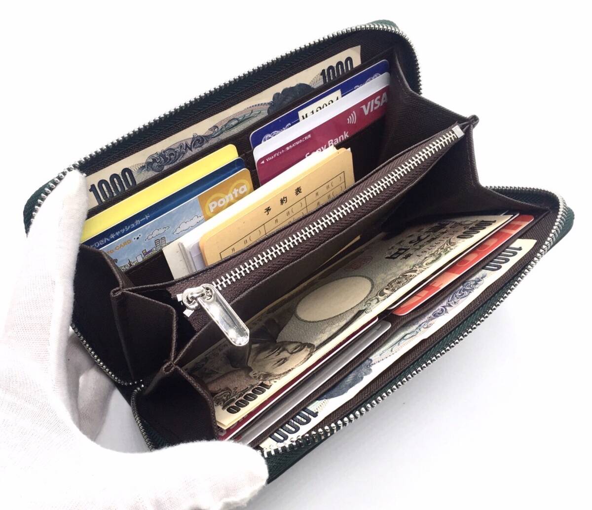 <金運アップ緑☆>長財布 ラウンドファスナー メンズ レディース 牛床革 深緑 收藏
