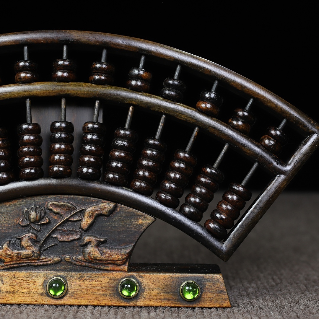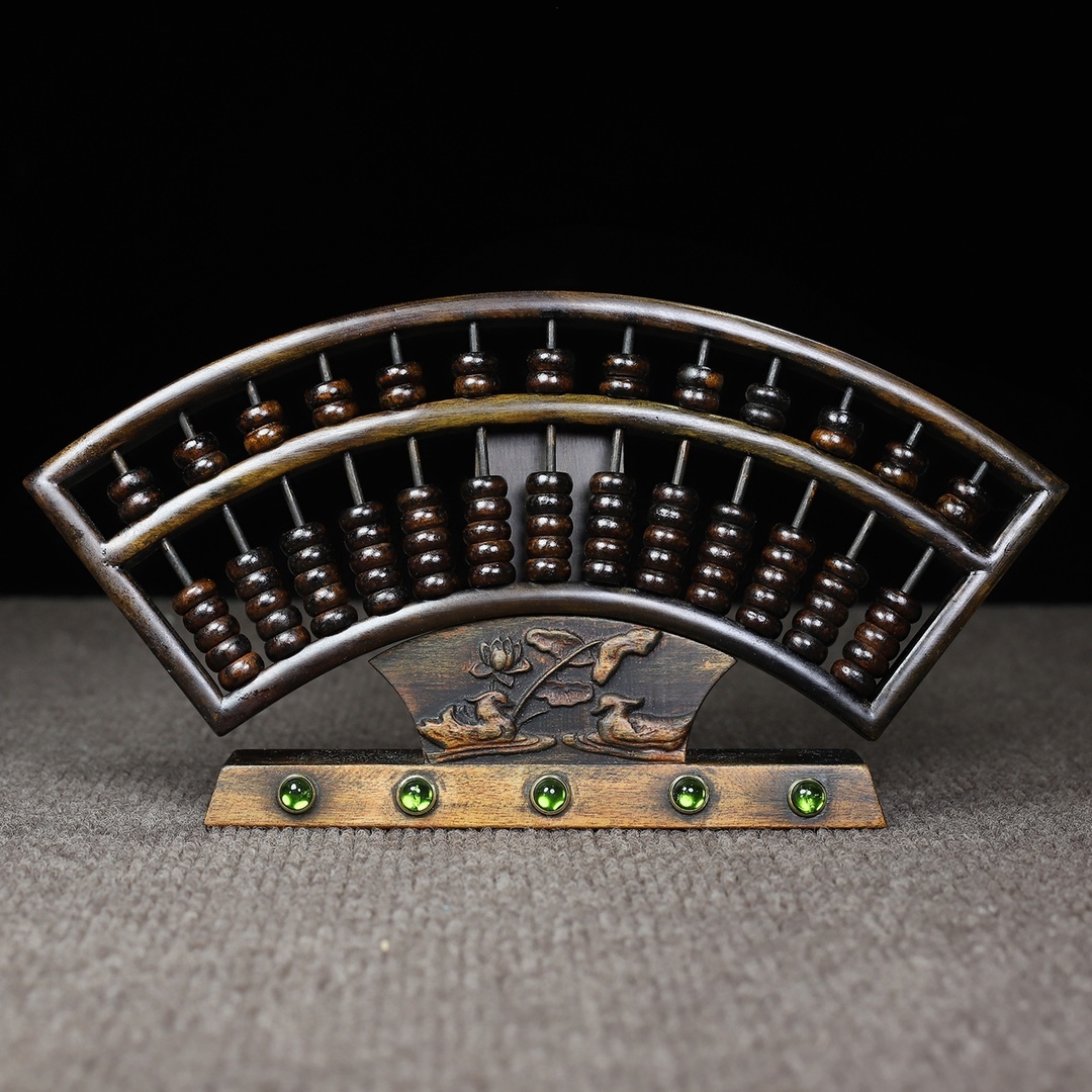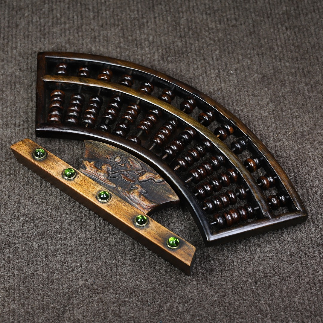 古木彫り 秘藏 清代 秘蔵花梨木帯台座扇形そろばん置物 書道具 文房具 時代物 細密彫 置物 賞物 唐物 木彫り 文玩 6.18cl 收藏