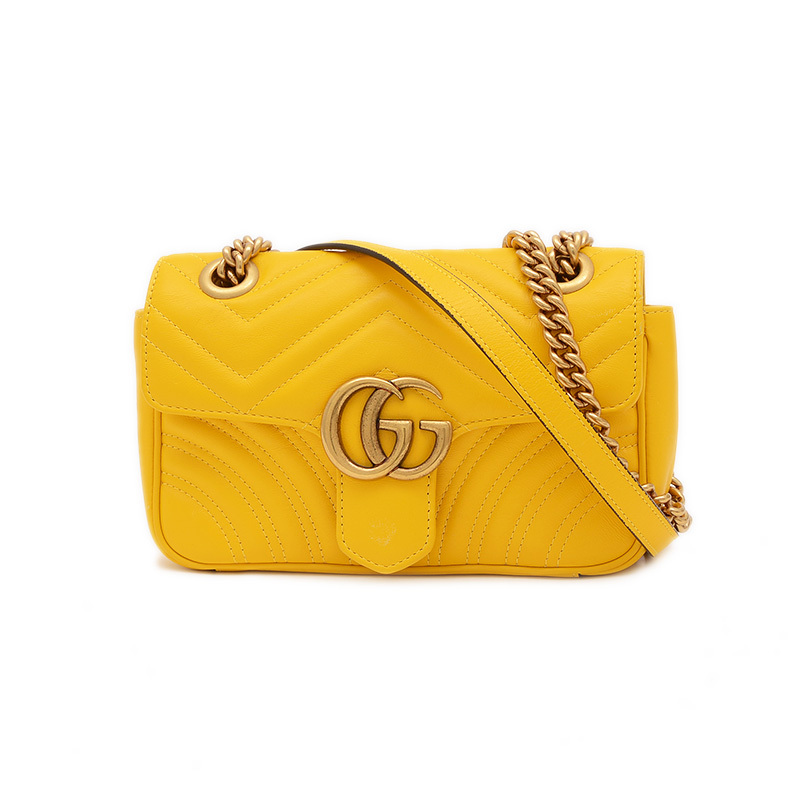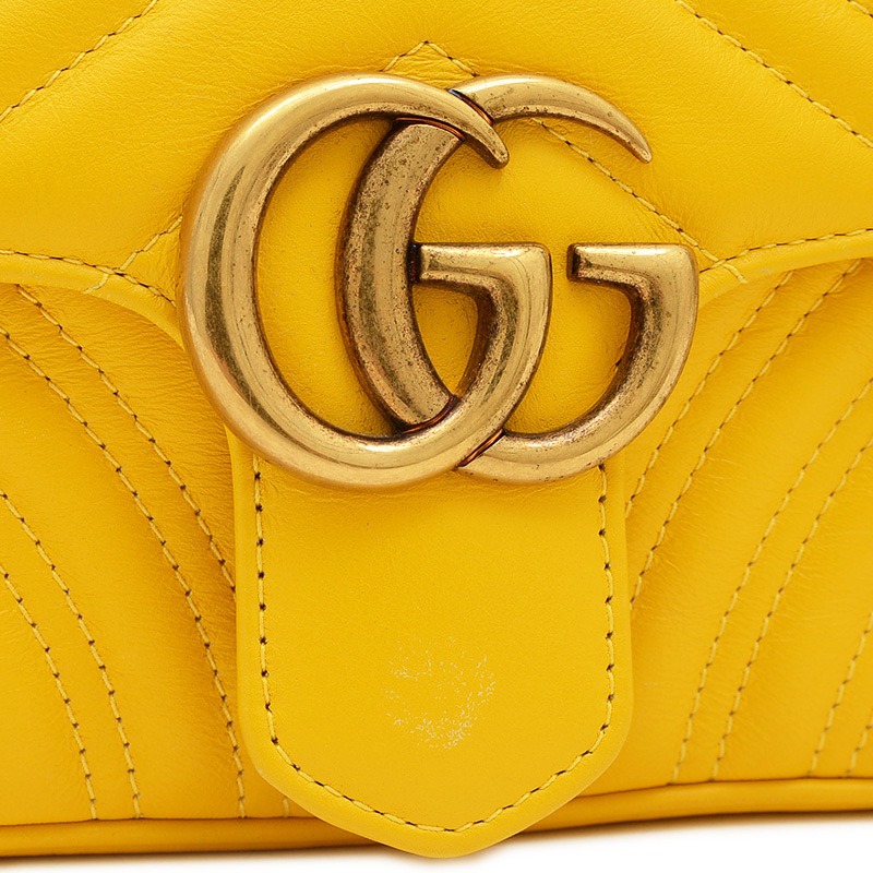 グッチ GGマーモント キルティング スモール ショルダーバッグ レザー イエロー 446744 收藏