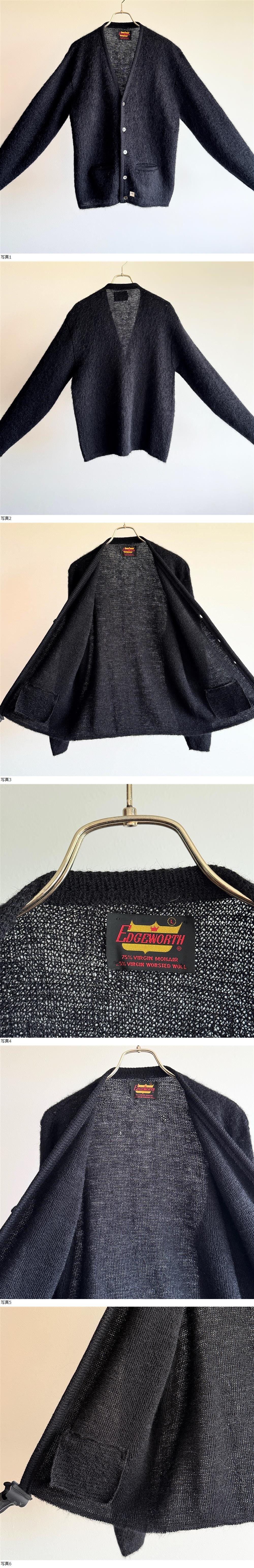 希少《 Dead / Black / Mohair 75%》60s デッド【 EDGEWORTH ブラック 黒 毛足長 モヘア カーディガン L ビンテージ 】 收藏